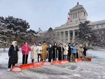 师生们的出行安全,许多同学积极响应号召,带上除雪工具,穿好保暖衣物,戴好手套,相约到基础楼下除雪。