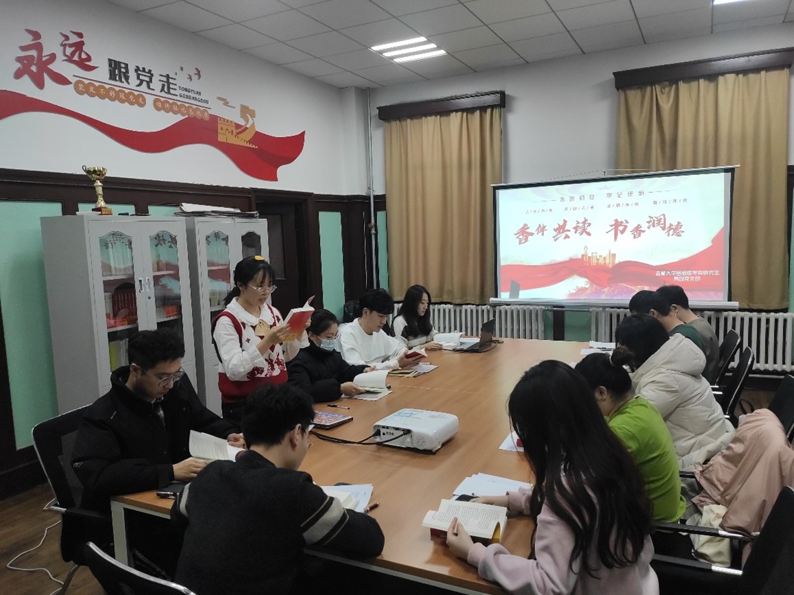 研究生第四党支部组织全体党员在开展 “香伴共读,书香润读”读书会主题党日活动。