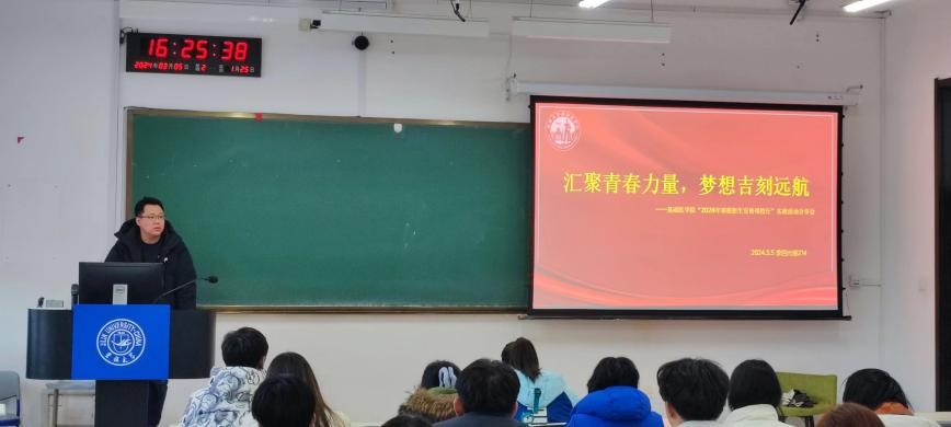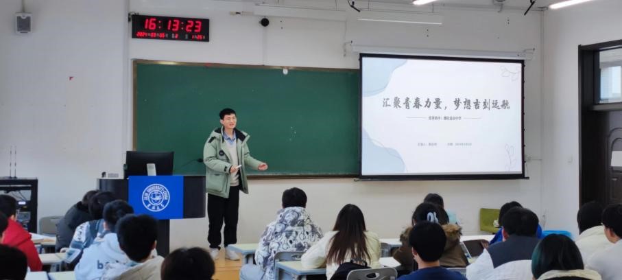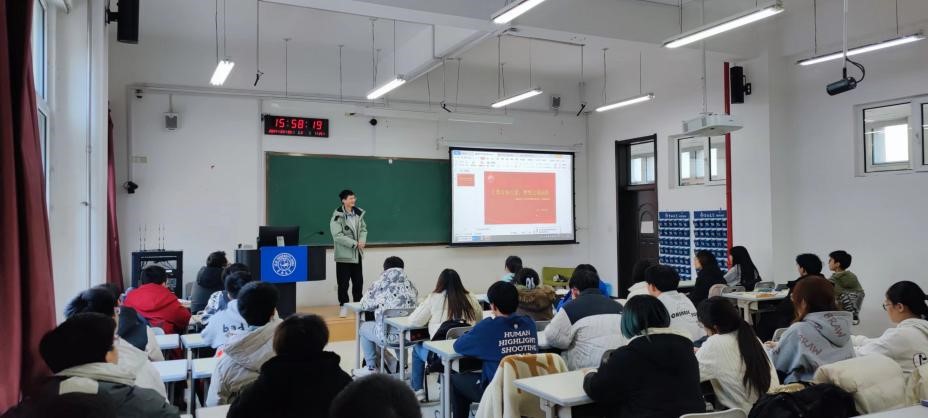 在前卫南区的李四光楼214教室,召开寒假招生宣传母校行分享会。2022级、2023级全体本科生的参与。