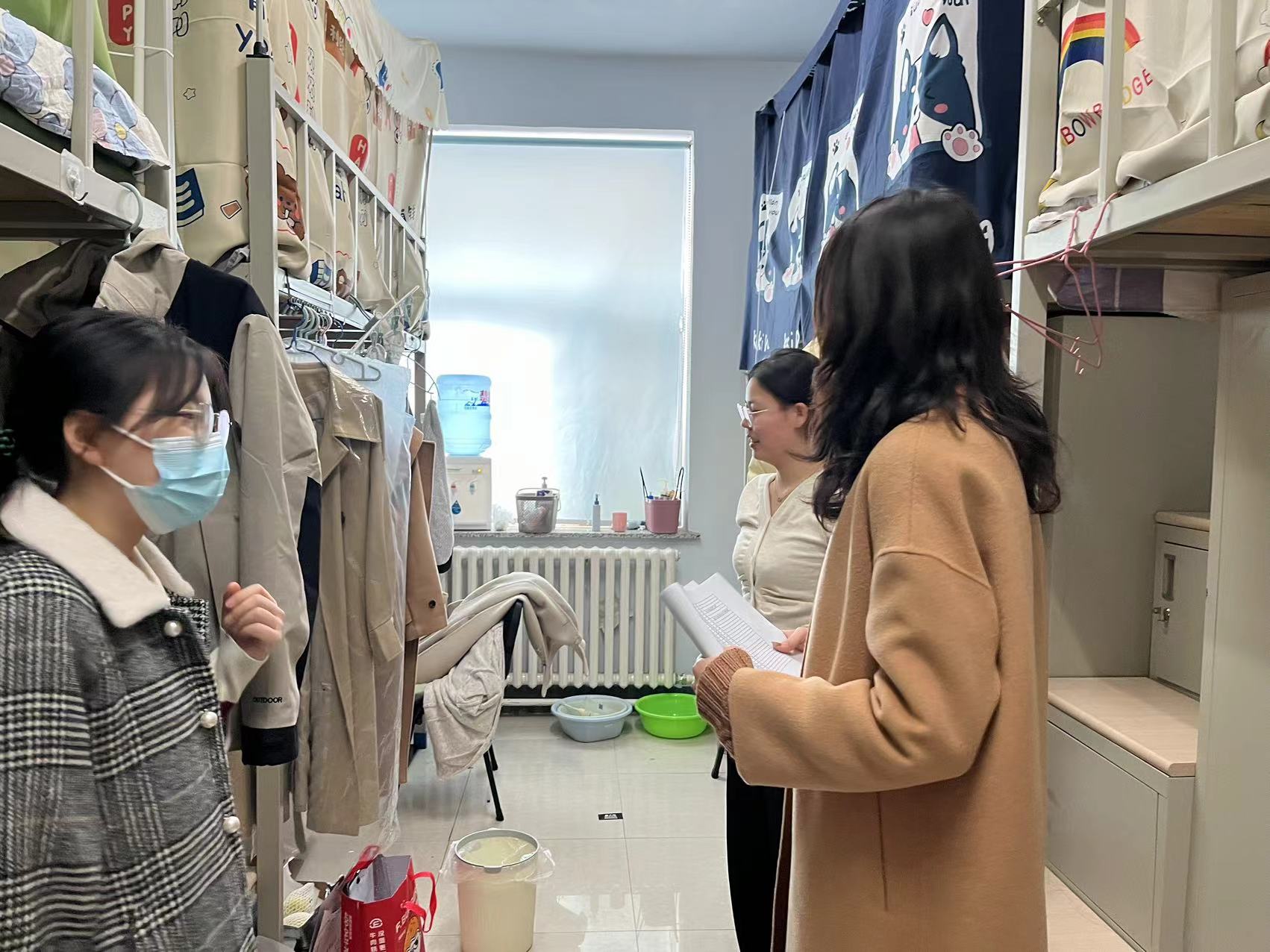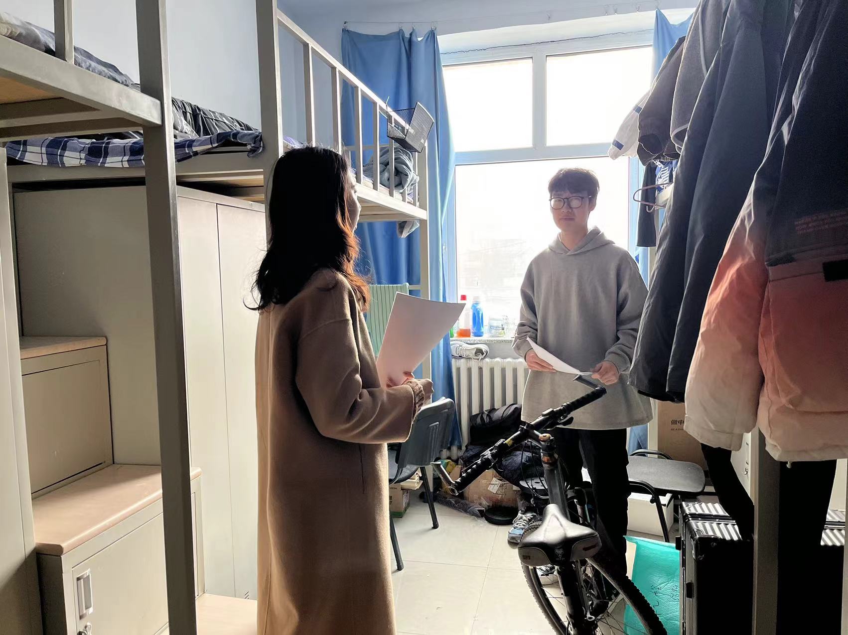 研究生辅导员孙佳钰于4月1日对学院研究生寝室进行走访。