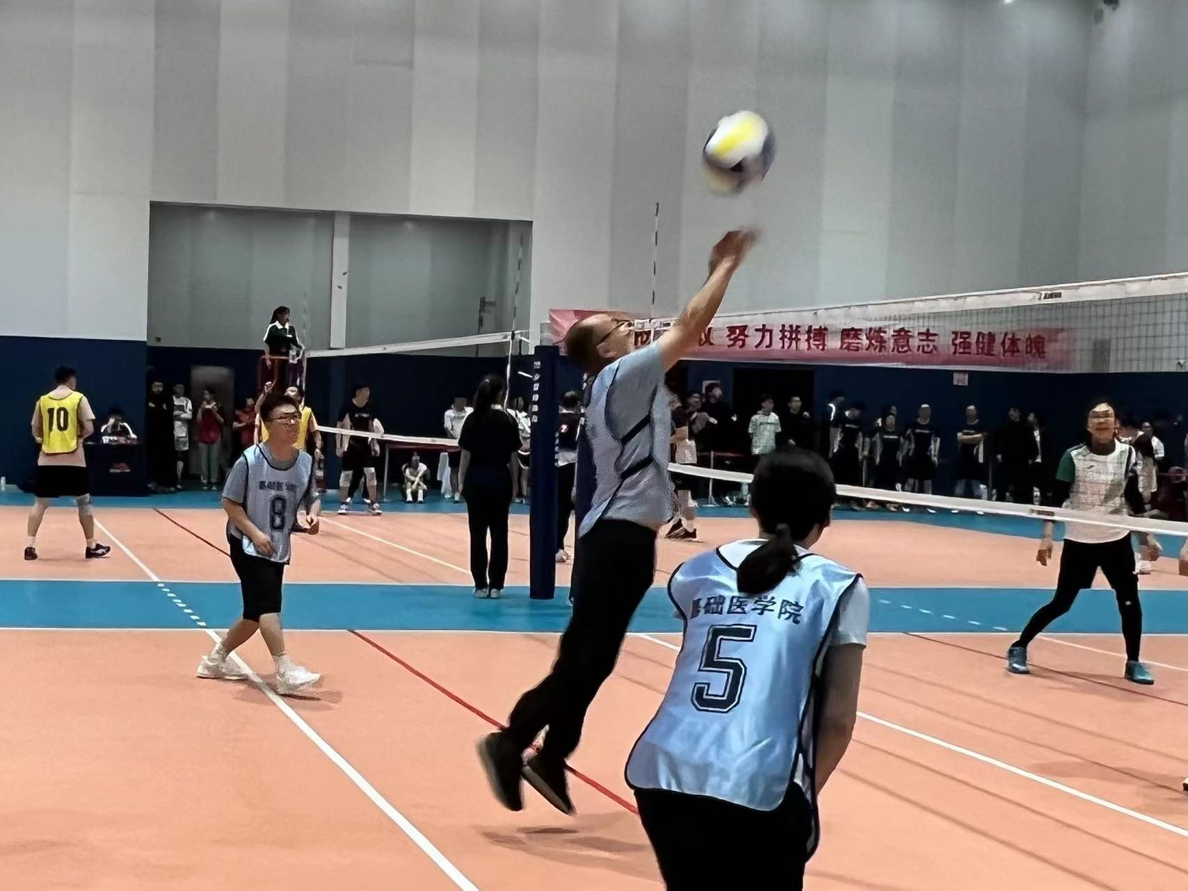 学子们的精神风貌和体育精神。尽管面对强大的对手,队员们毫不畏惧,在场上挥洒汗水,一次次精彩扣杀、拦网和防守,赢得了观众的阵阵掌声和加油声。此次比赛不仅增强了我院学生们的凝聚力和团队精神,也展现了我院学子们积极向上、勇于拼搏的精神风貌。参赛队员们纷纷表示,通过这次比赛,他们不仅锻炼了自己的身体素质和技能水平,还学会了如何更好地团结协作、相互支持,这对于他们今后的学习和生活都有着重要的意义。