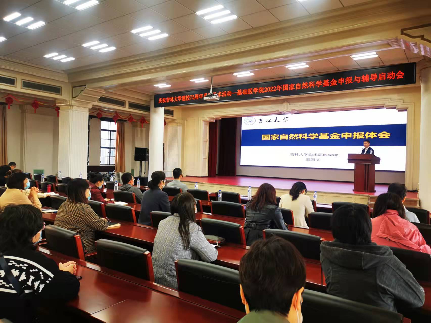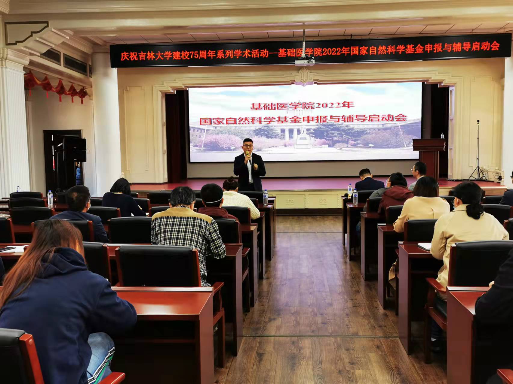 于9月11日上午8:00在二楼会议室召开2022年度国家自然科学基金申报与辅导启动会。邀请白求恩医学部副学部长王国庆教授做题为《国家自然科学基金申报体会》的专题报告,会议由副院长刘海岩主持,院长王放参加会议并做总结讲话。学院80余名教师参会。