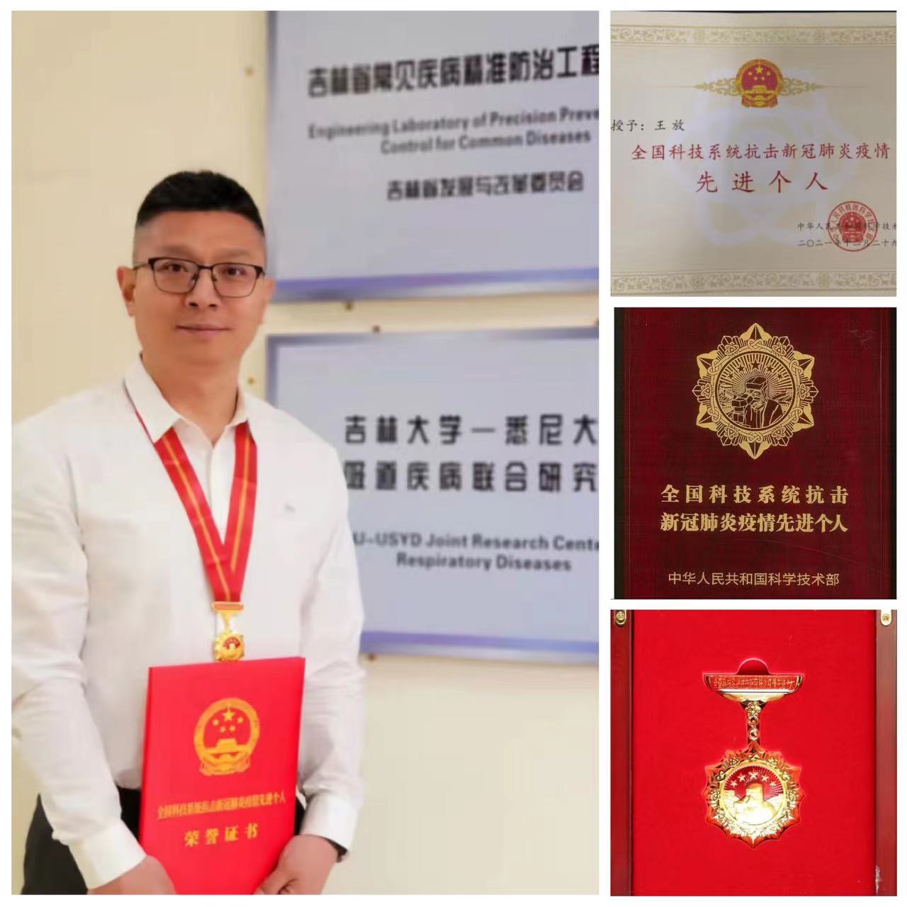 为表彰先进,大力弘扬伟大抗疫精神和科学家精神,科技部于近日签发《关于表彰全国科技系统抗击新冠肺炎疫情先进集体和先进个人的决定》(国科发奖[2022]18号)文件,全国总计314人获得“全国科技系统抗击新冠肺炎疫情先进个人”称号,吉林省共有4人获得表彰,王放教授作为吉林省科技工作者代表获奖,以实际行动诠释了胸怀祖国、服务人民、勇攀高峰的科学家精神。