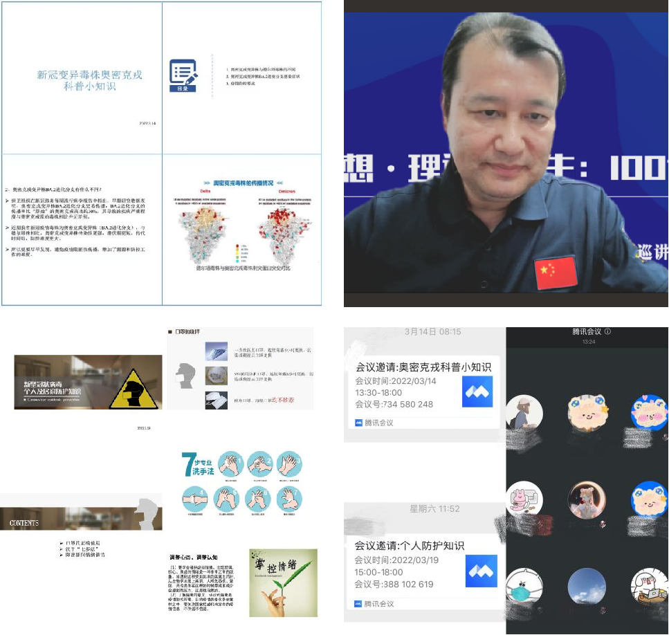 目前,线上课堂已开展三期:(一)“新冠变异毒株奥密克戎科普小知识”,详细介绍本次疫情奥密克戎亚型变异毒株的特点、传播途径、感染症状和抗原检测机制。(二)“新型冠状病毒个人及居家防护知识”,与学生分享隔离期间注意事项、洗手消毒七步法、如何保持良好身心状态等。(三)组织学生观看学生工作部举办的“思想·理论·人生:100讲”——疫情防控名师线上大讲堂系列巡讲第七讲活动。受成人网站