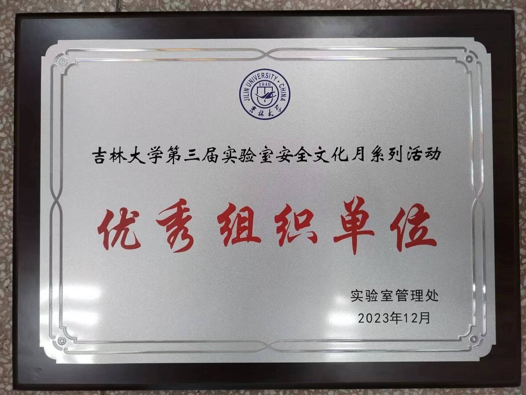 在此期间积极配合,实验室安全文化月总结大会,我院被评为实验室安全文化月优秀组织单位,马琰铭副校长为优秀组织单位颁奖,王晓荣书记代表学院领奖。