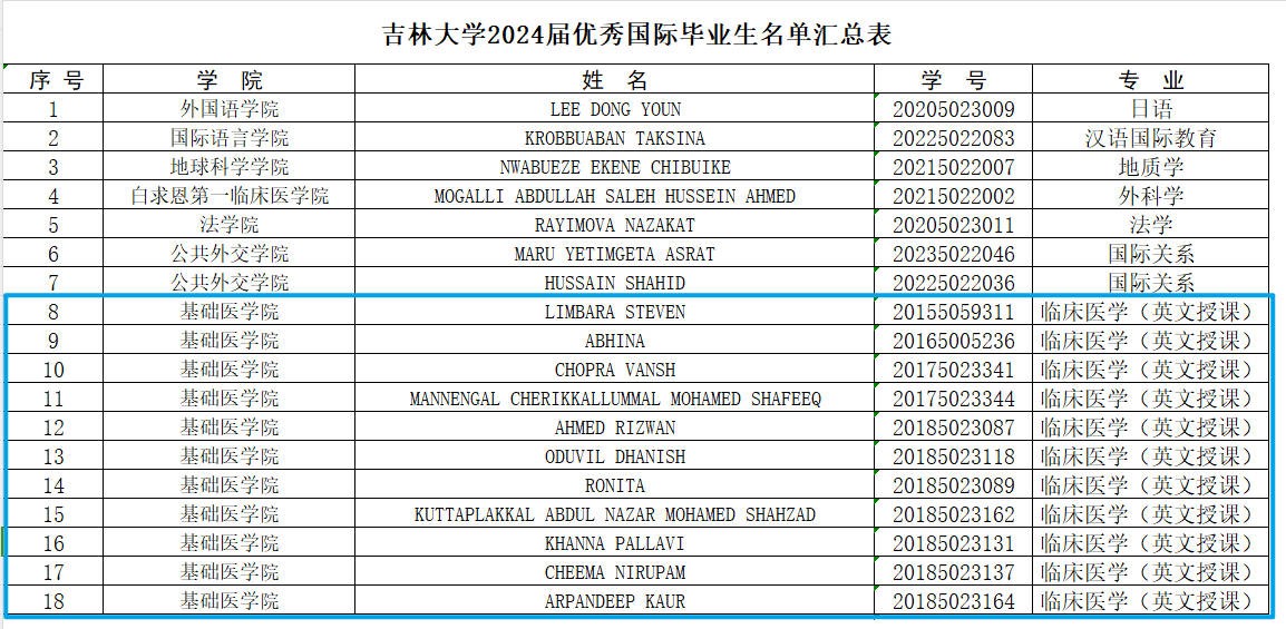 优秀本科毕业生评选,全校来华留学本科生共计18名学生获得此项荣誉,其中我院MBBS学生共有11名,占比61%。佳绩的获得,充分体现了学院的育人成效。未来,学院将不断提升和完善临床医学专业留学本科生人才培养工作,打造自己的品牌,为学校培养出优秀的临床医学专业留学本科生,为提升成人网站