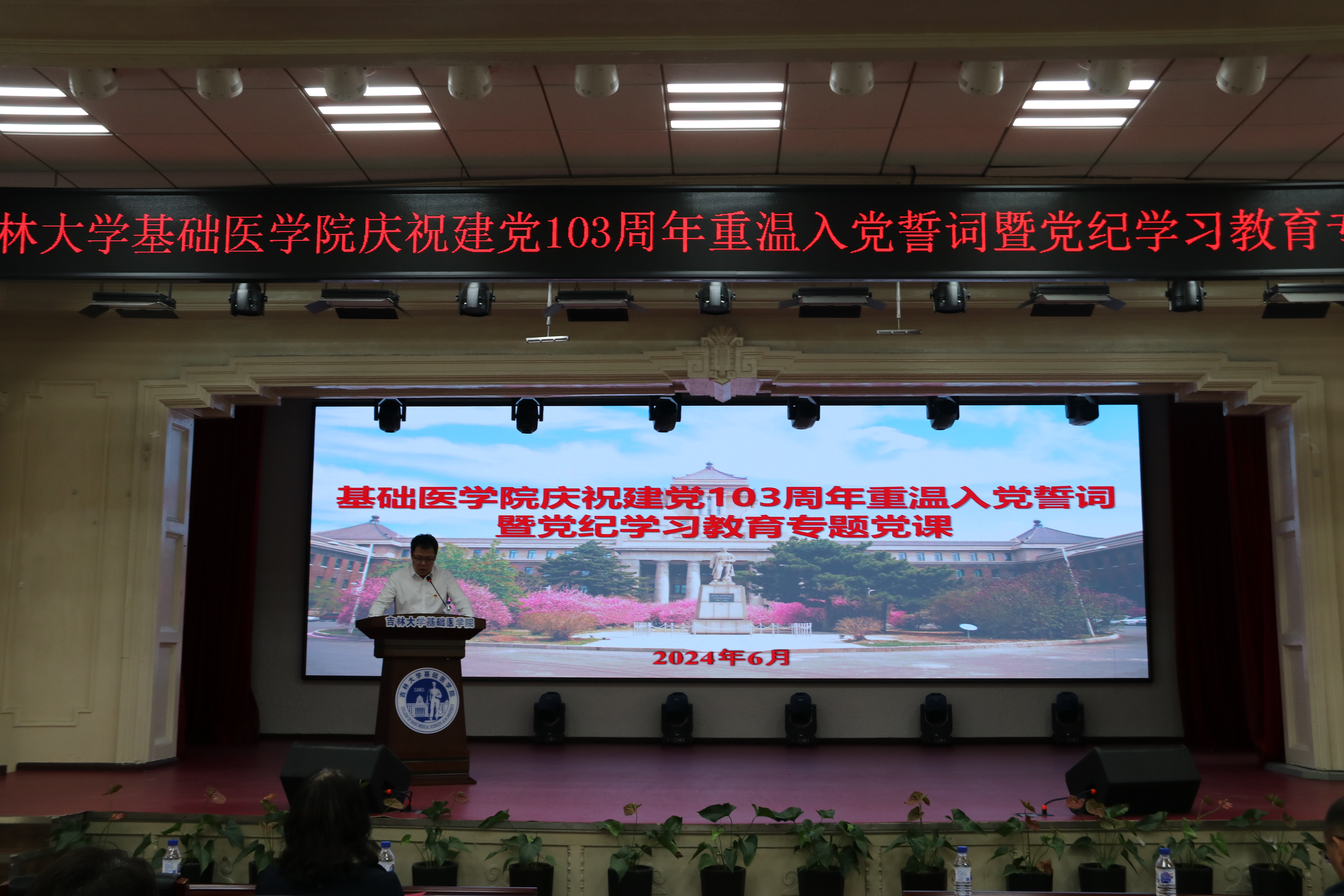 召开庆祝建党103周年重温入党誓词暨党纪学习教育专题党课。学院领导班子成员、党委委员、纪委委员、党支部委员、中层党员干部以及新发展党员和部分积极分子参加了会议。会议由学院党委副书记、纪委书记李东洋主持。