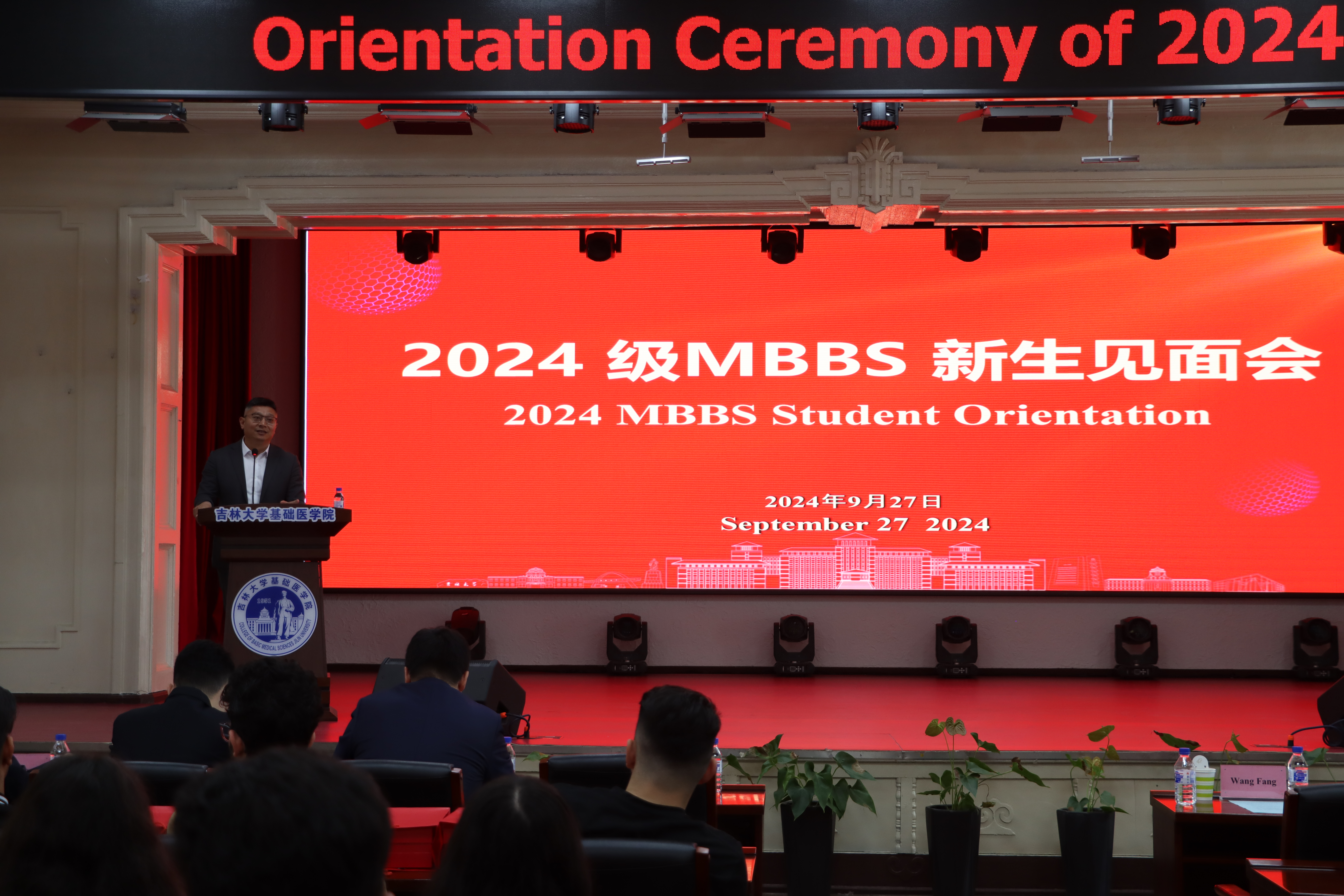 感受到家的温暖,尽快适应并融入校园生活。2024级国际学生辅导员刘思含老师也在会上表达了对新生的关怀与期望。未来的日子里她将为新生提供生活上的帮助和指导,希望新生们能够积极面对挑战,珍惜大学时光,实现自我成长。2024级MBBS班主任闫天昊和辛卓远两位老师表示,将在日后的学业和生活中,全力以赴为学生提供帮助和支持,解答疑惑,与学生们共同成长,携手并进。