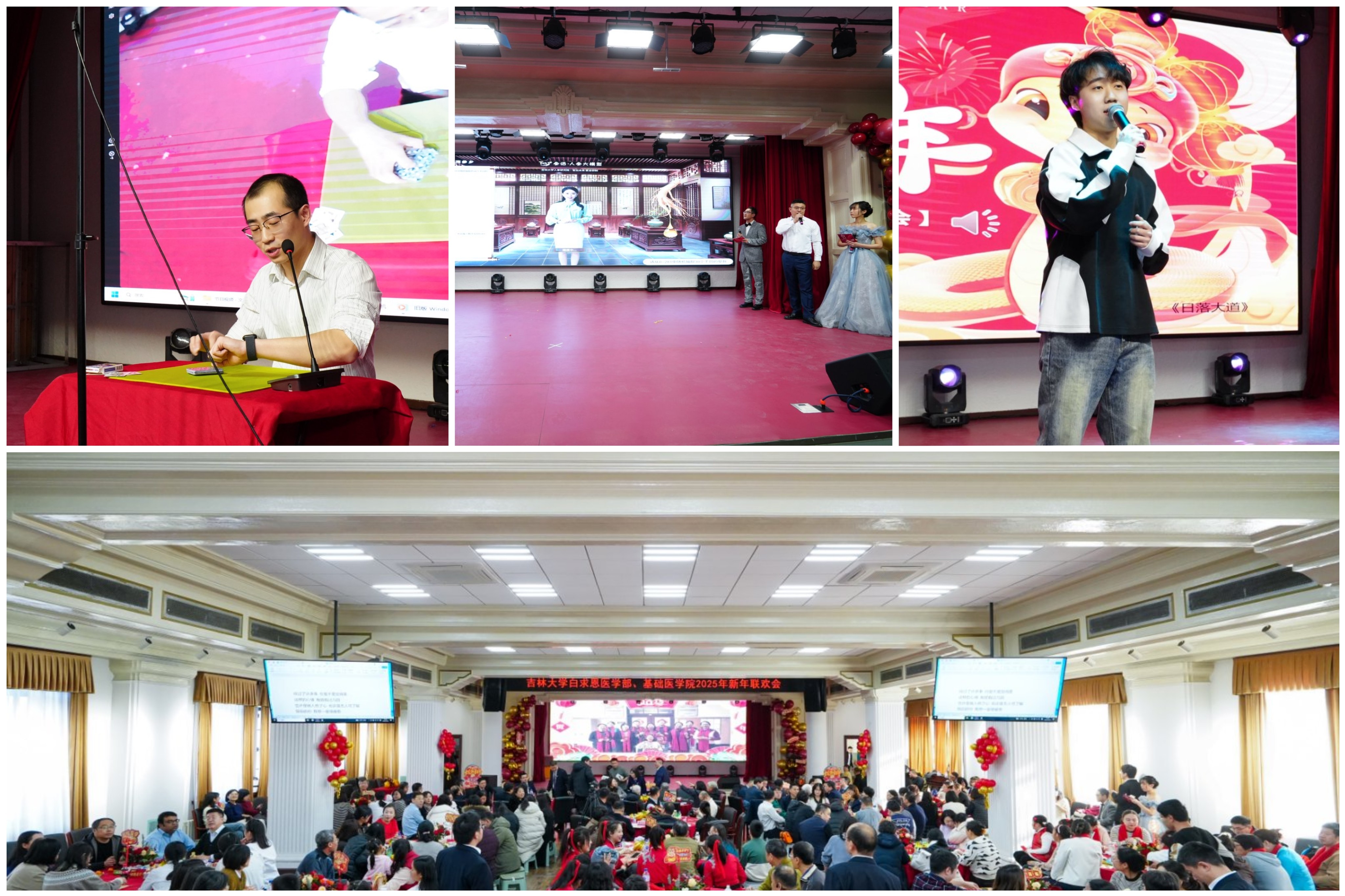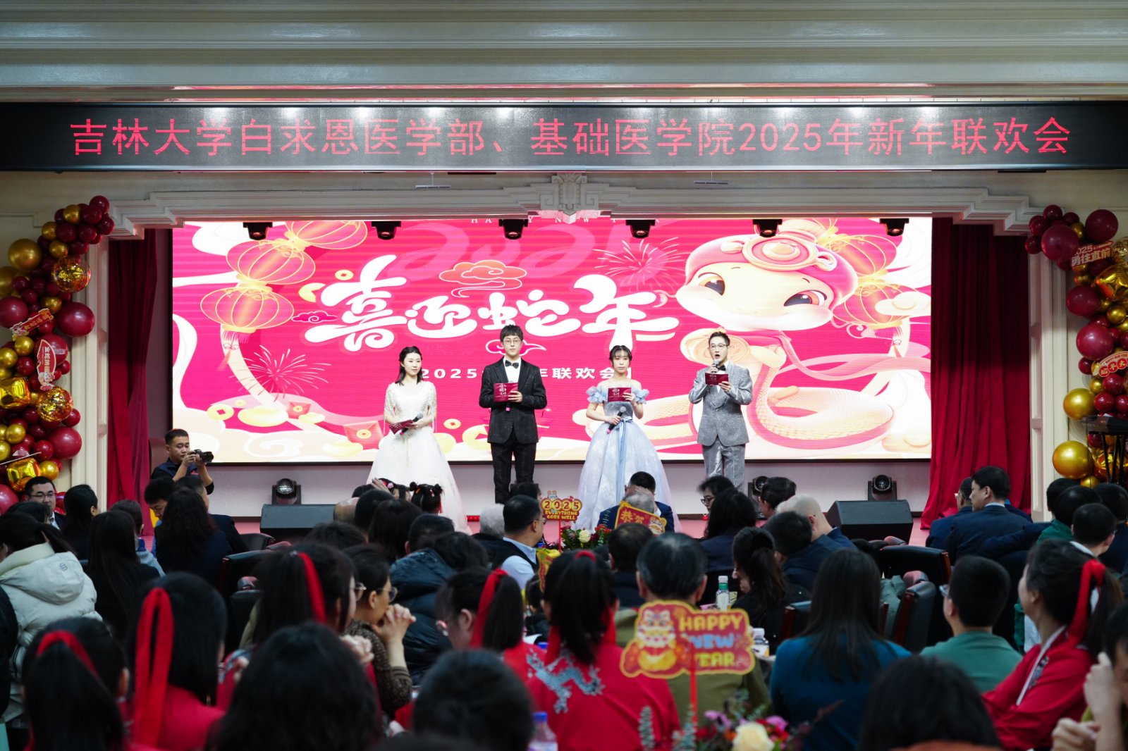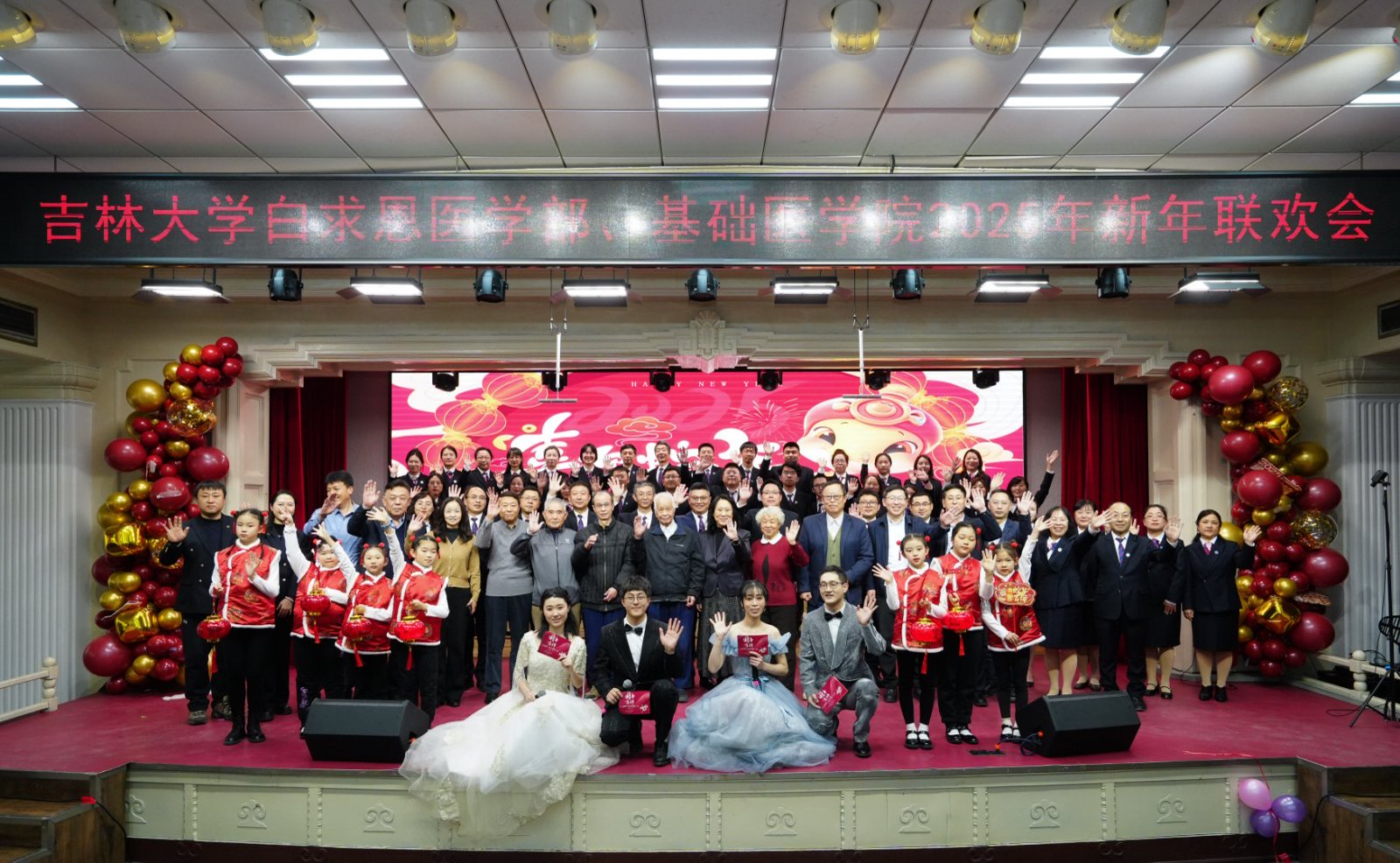 联合在基础楼二楼报告厅举办2025年新春联欢会,学部及学院现任、历任领导班子成员、部分退休老领导、学院合作单位负责人,师生代表共计二百余人欢聚一堂,共迎新春,欢庆佳节。