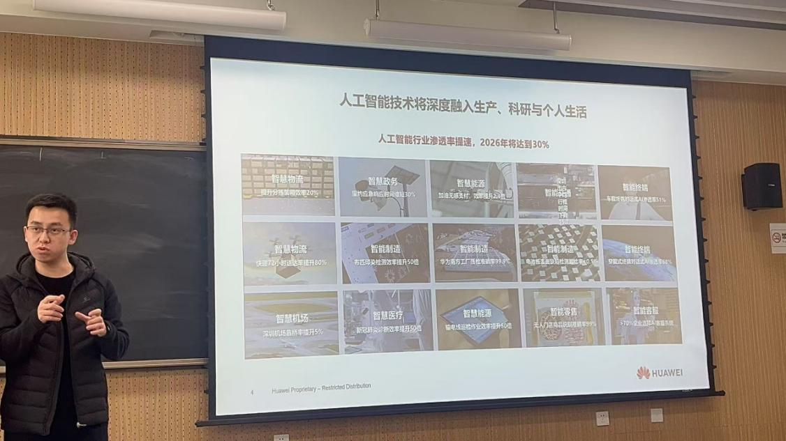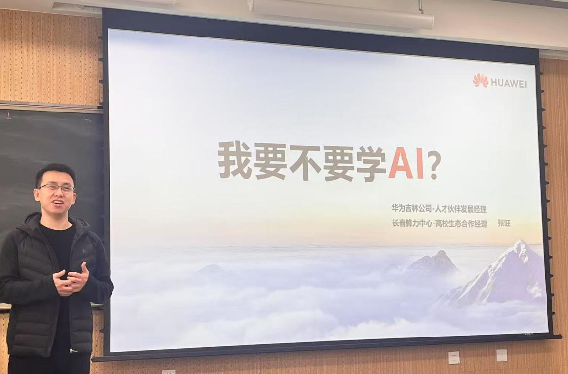邀请华为吉林公司人才伙伴发展经理、长春算力中心高校生态合作经理张旺为我院2022级本科生带来一堂以《我要不要学AI》为主题的就业指导分享课,讲座聚焦人工智能行业发展与医学应用。为同学们打开了一扇将基础医学通向人工智能的窗口。学院党委副书记李东洋参与本次分享课。