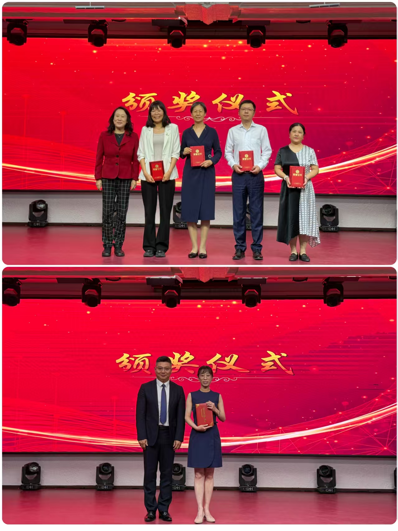 获奖教师们在热烈的掌声中走上台前,学院领导班子成员先后为他们颁发荣誉证书并合影留念。