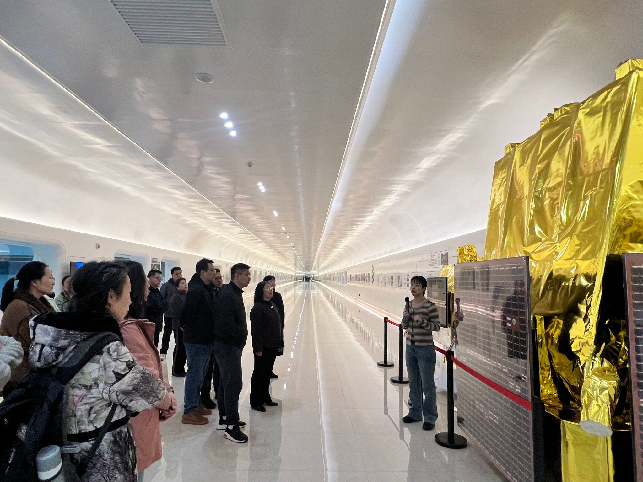 在基地专业讲解员的细致引导下,全体人员循着长光卫星技术股份有限公司发展足迹、“吉林一号”卫星系列重大研发成果、以及航天技术在民生保障、产业升级、科研创新等各领域的应用拓展。大家驻足科普长廊,透过观景窗近距离观摩卫星生产车间一线科研人员的工作场景,从航天技术的迭代升级到科研工作者的坚守奉献,从卫星遥感影像的实际应用到航天精神的传承弘扬,都让在场教职工深受震撼、倍感振奋,对航天工作者攻坚克难、勇攀高峰、精益求精、无私奉献的崇高精神心生敬佩。