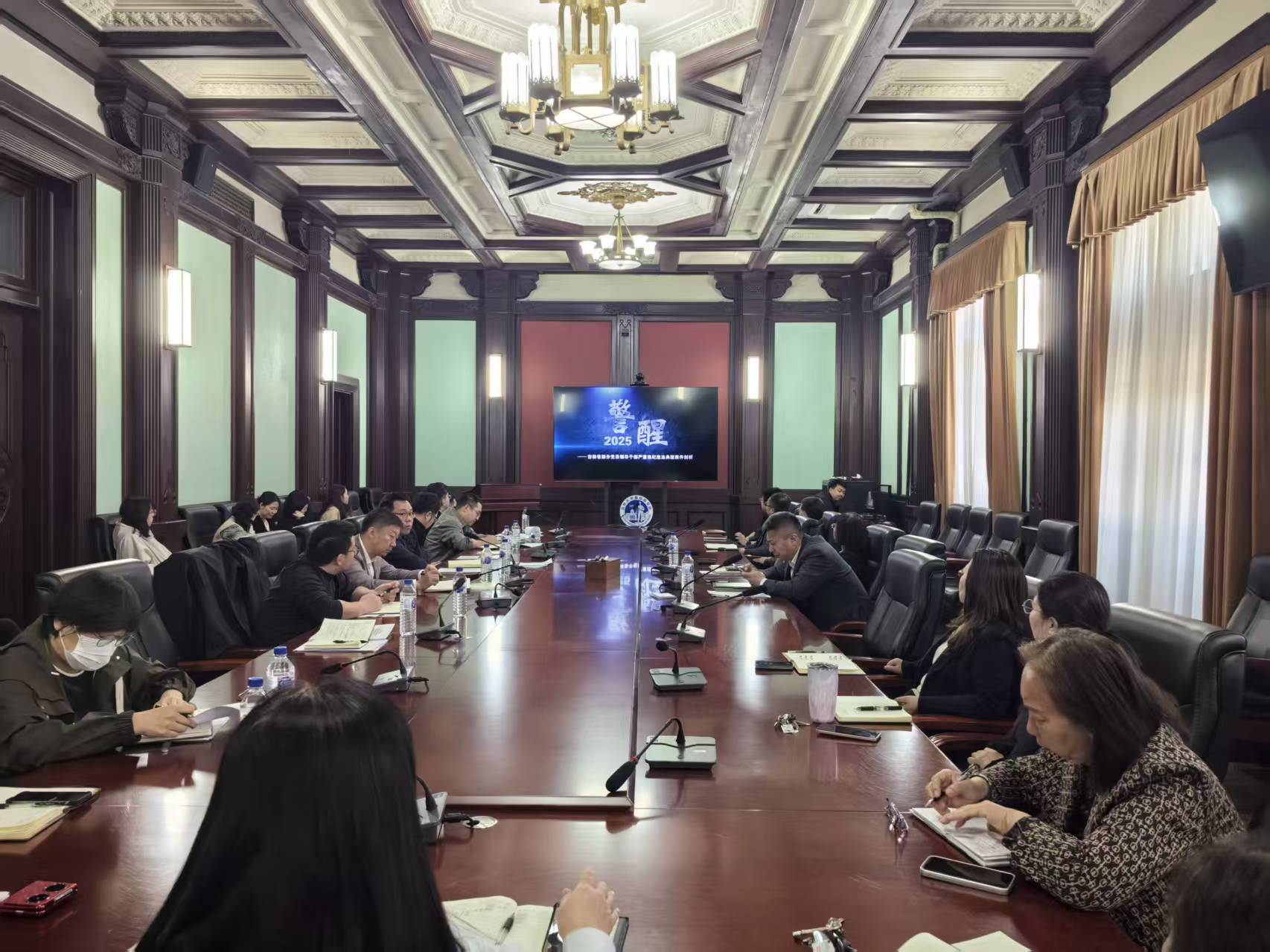 会上,全体参会人员集中观看警示教育专题片《警醒2025》,以案为鉴、警钟长鸣。学院党委副书记、纪委书记李东洋通报学校 2025年以来违纪违法典型案例,以案明纪、以案促改,引导全体干部知敬畏、存戒惧、守底线。随后,各学系主任围绕专题片及典型案例深入交流研讨,结合日常工作实际找问题、谈体会。