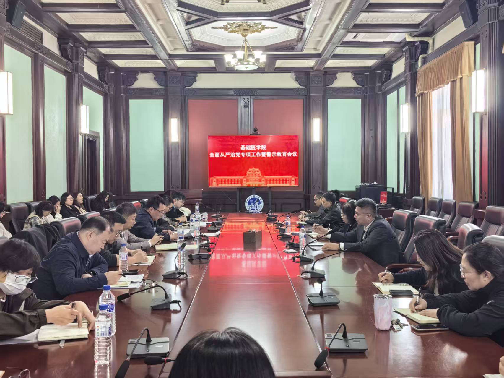 召开2026年全面从严治党工作会议暨警示教育大会,会议深入贯彻落实学校全面从严治党工作会议部署要求,认真学习领会田辉书记讲话精神。学院领导班子成员、党委委员、纪委委员、各科室(学系、中心)负责人、教工党支部书记参会,会议由学院院长王放主持。