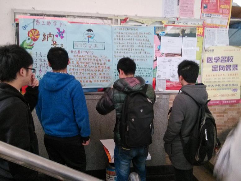 针对当下H7N9疫情的严峻形势,701105团支部成员共同制作关于“预防禽流感H7N9”的宣传海报。在宣传过程中,701105团支部成员将海报分发到学生宿舍,并在新民校区多个公共场所普及预防知识,得到公众的一致好评。