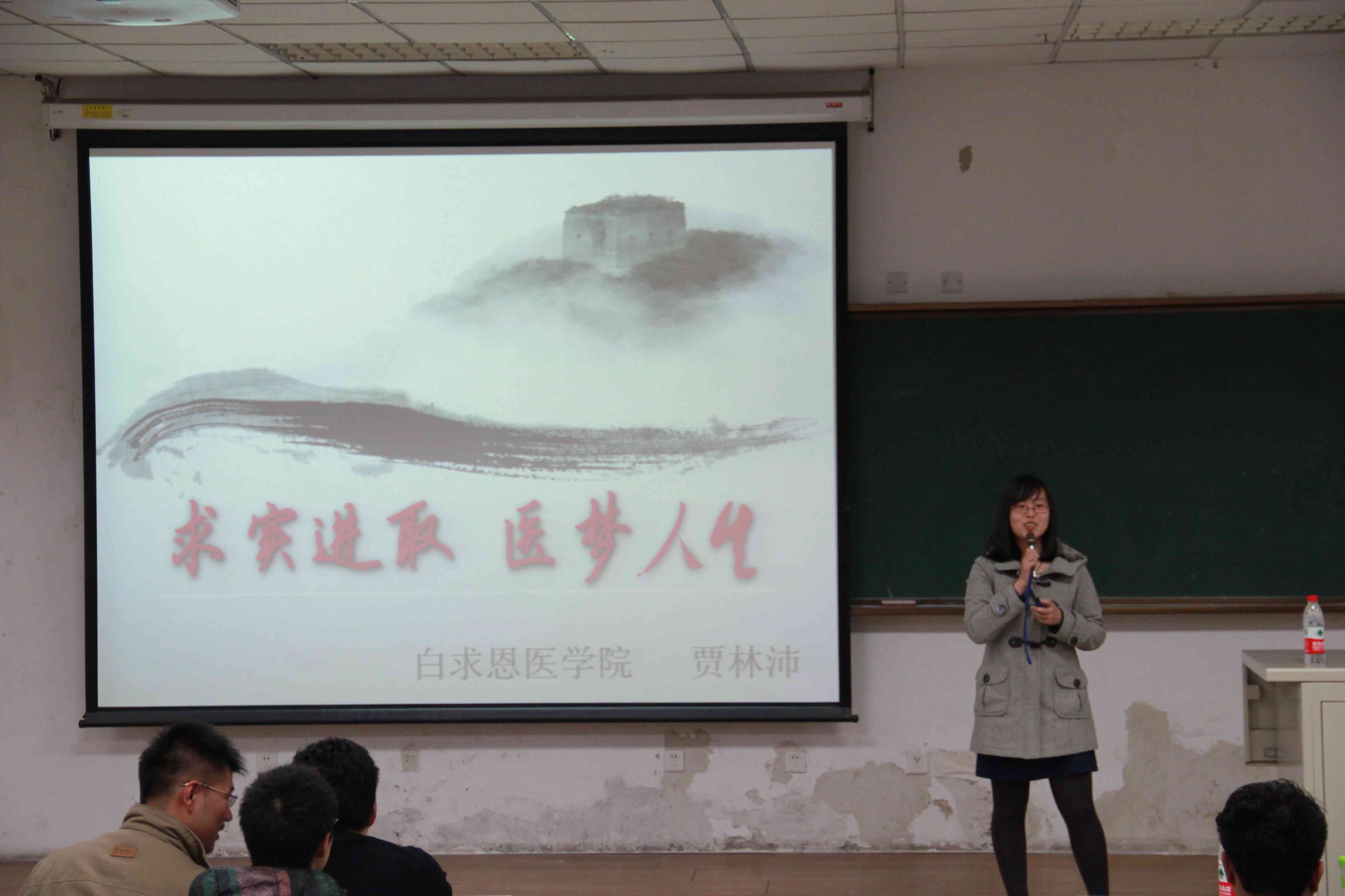 十佳大学生、白求恩医学院2009级白求恩医学班贾林沛同学应邀担任本次讲座的主讲人。
