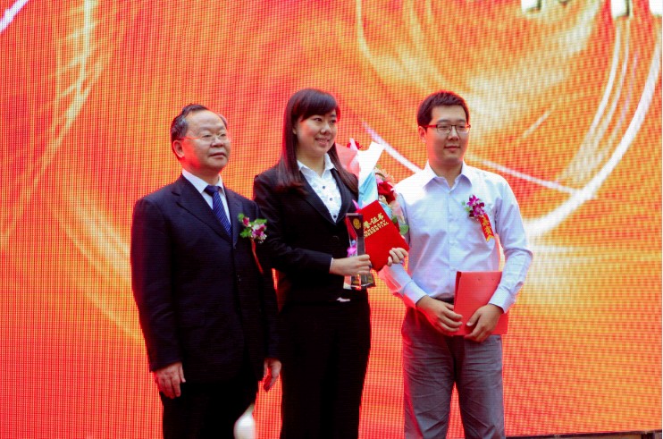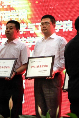 “十佳班级”,李梓萌获2011年十佳大学生。校党委书记陈德文亲自为李梓萌同学颁奖。(学生记者:赵晓桐)