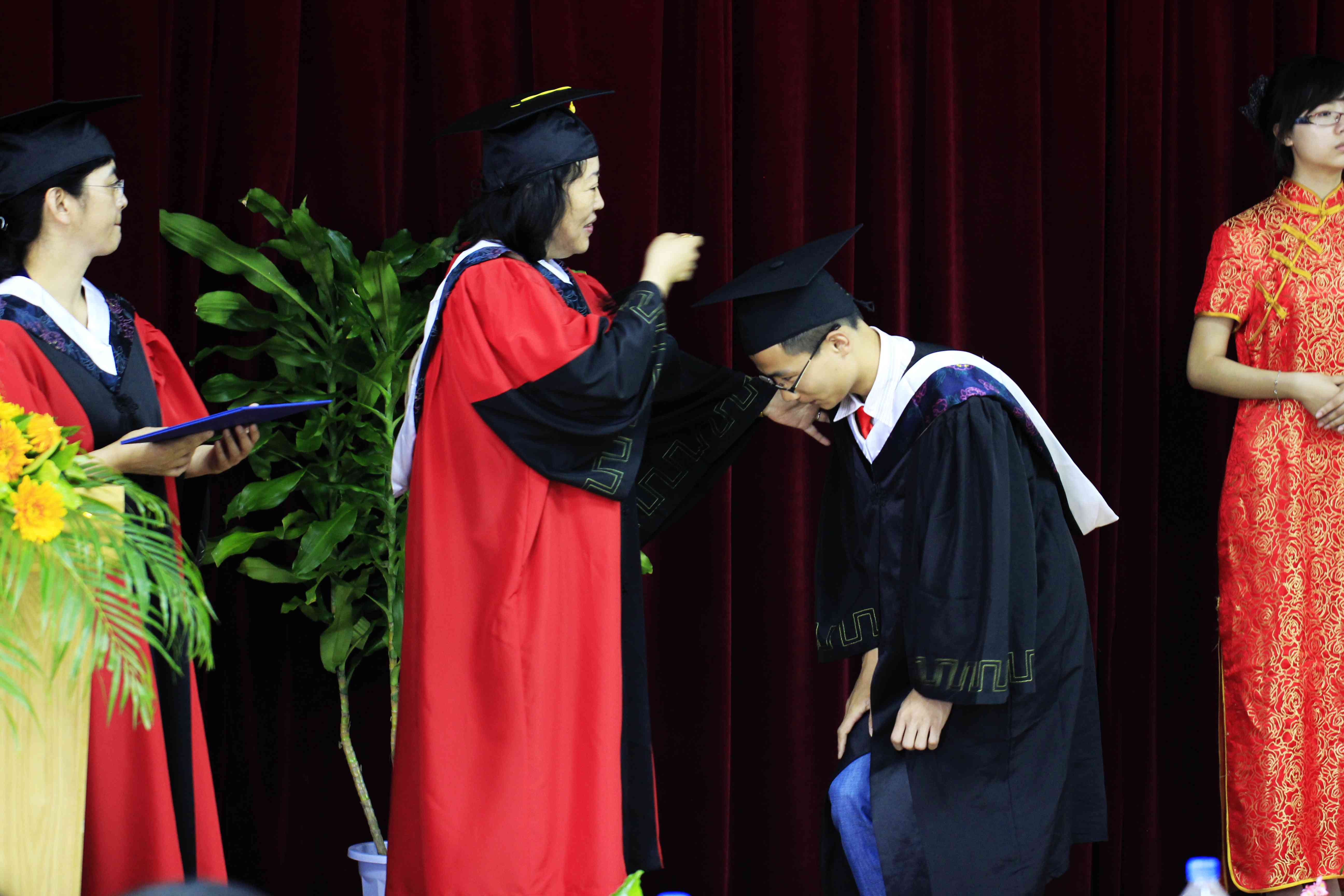 在庄严的国歌声中,白求恩医学院2012届毕业典礼隆重开始。首先,白求恩医学院常务副院长孙连坤教授宣读了2012届本科毕业生、研究生毕业生名单。随后,由校长助理、白求恩医学部常务副学部长、白求恩医学院院长李凡教授受校长李元元教授的委托为2012届毕业生授予学位,基础医学学位评定分委员会主席王丽颖教授协助其授予学位。2012届毕业生怀着激动的心情和对师长的感恩之心依次走上台接受学位授予。