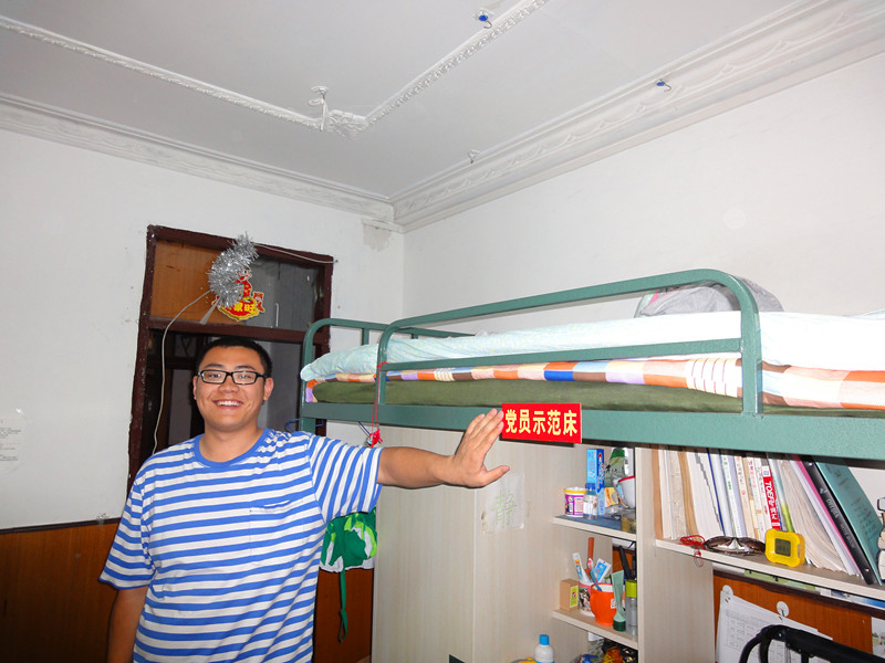 周春禹等人先后对新民校区一公寓、三公寓、六公寓、八公寓的6个党员示范寝室和7个党员示范床进行了挂牌,同时对寝室安全卫生状况进行了检查。