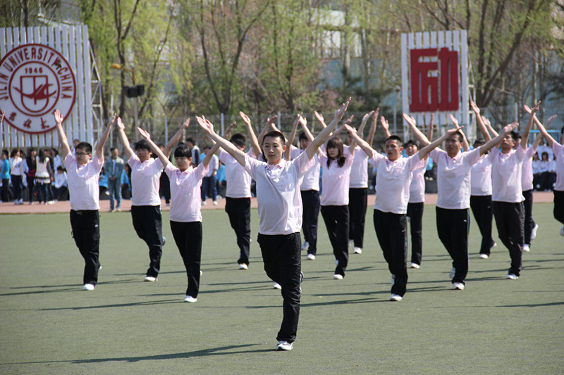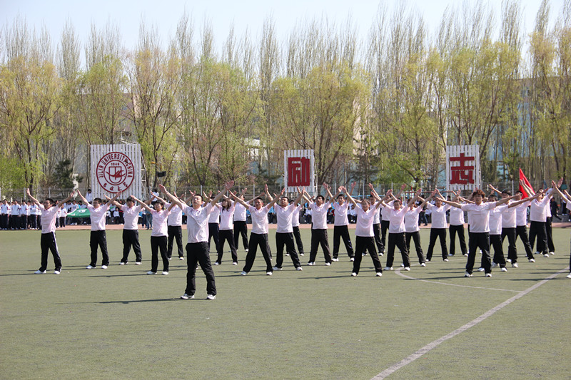 节奏欢快的广播体操乐曲铿锵有力的回荡在操场中,也将激烈的比赛拉开了帷幕。白求恩医学院代表队首先上场。参赛队员着装统一,信心饱满,动作规范标准,整齐划一,赢得评委和观众的认可,成绩斐然。