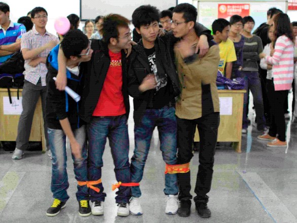 白求恩医学院及生命科学学院共200余人参加了此次活动。参加人员共分成10组,分别完成信任背摔,障碍跑,踩报纸及穿越丛林四个项目。首先进行的信任背摔环节中,各组队伍团结协作,配合默契,均获得了满分的好成绩。紧接着是由四人五足、蒙面背、双人夹气球、单人麻袋蹦组成的障碍跑。各组选手势均力敌,互不相让。随后,生命科学学院的学生会副主席刘佳明对活动的顺利举行表示祝贺,并希望两院的友谊能够以此为基础更上一层楼。接下来的踩报纸活动则更为精彩,报纸共折叠三次,各个队伍都集思广益以“叠罗汉”、“金鸡独立”等方式顺利完成。最后的穿越从林项目,各组队伍队员手拉手,在两分钟内轮流蹲下身子,通过一定高度的绳子,此环节使整次活动的气氛达到最高点。活动的最后,白求恩医学院学生会外联部部长刘相良对本次活动进行了总结,他表示白求恩医学院及生命科学学院在本次活动中互通有无,在锻炼自我的同时也增进了双方的友谊,促进了两院学生间的交流与沟通,希望双方能在今后的学习生活中互相帮助,更好的展现吉大学子风采。