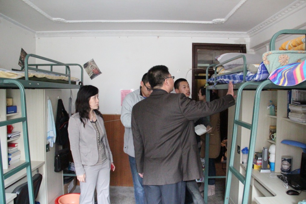 各位领导、老师先后对新民校区八公寓、三公寓、一公寓、六公寓的党员示范寝室、党员示范床进行挂牌,并对上次寝室安全卫生检查评选的优秀寝室授予流动红旗。在挂牌的过程中,贾晓辉对获奖寝室的环境及卫生状况给予了充分的肯定,并鼓励同学们要齐心协力把寝室环境搞好。活动最后,苑锐说,本次党员示范寝室挂牌及安全卫生检查活动是学院推进基层组织建设年活动和落实寝室安全卫生检查相关通知的有效结合,并将在学院大力推广并长期开展。