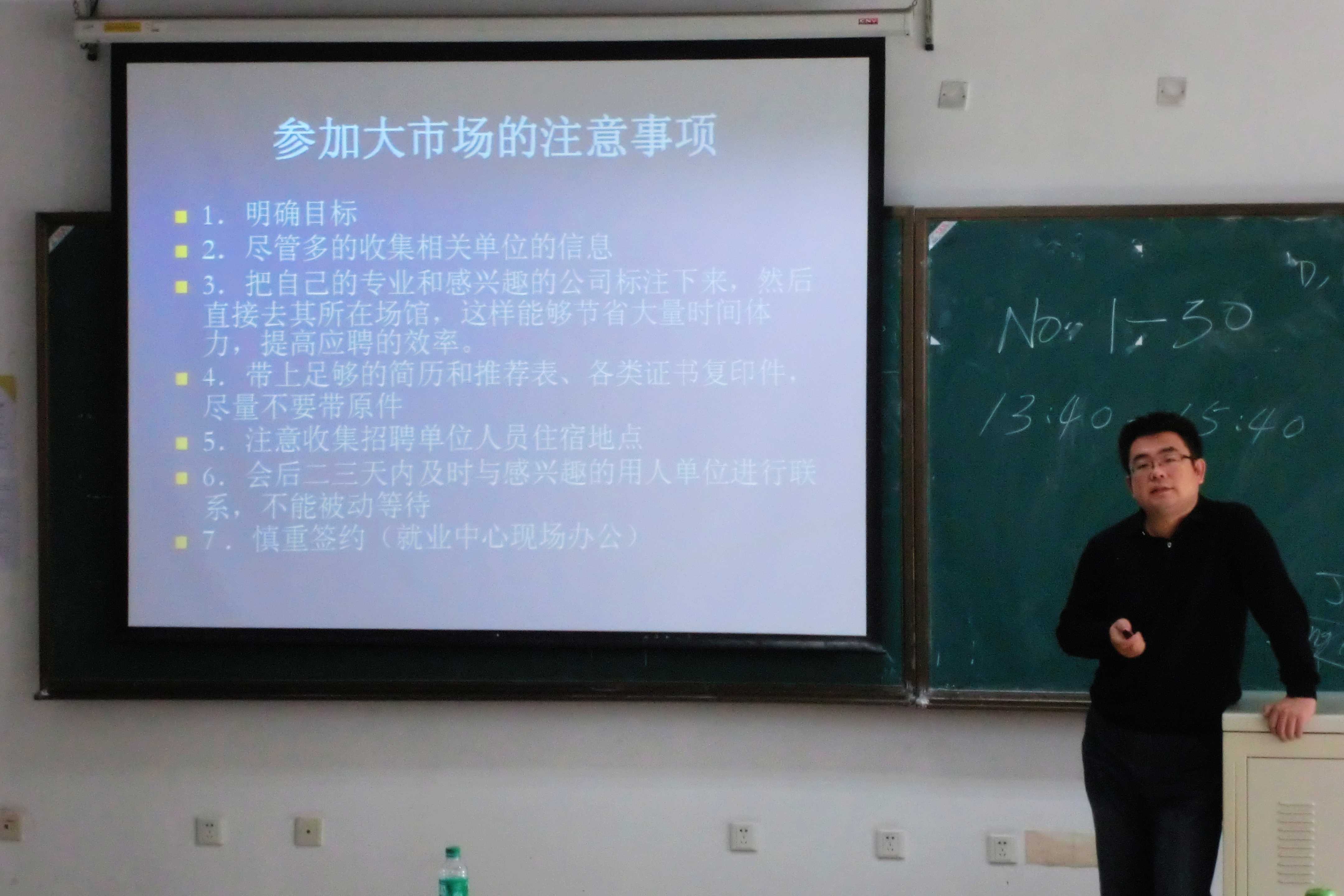 2012届毕业生就业大市场的相关情况。随后,他主要就各招聘医院和医药企业的招生情况和各单位的相关信息进行了系统的分析。最后,他结合以往毕业生在应聘时出现的一些问题向同学们提出相关注意事项和建议。