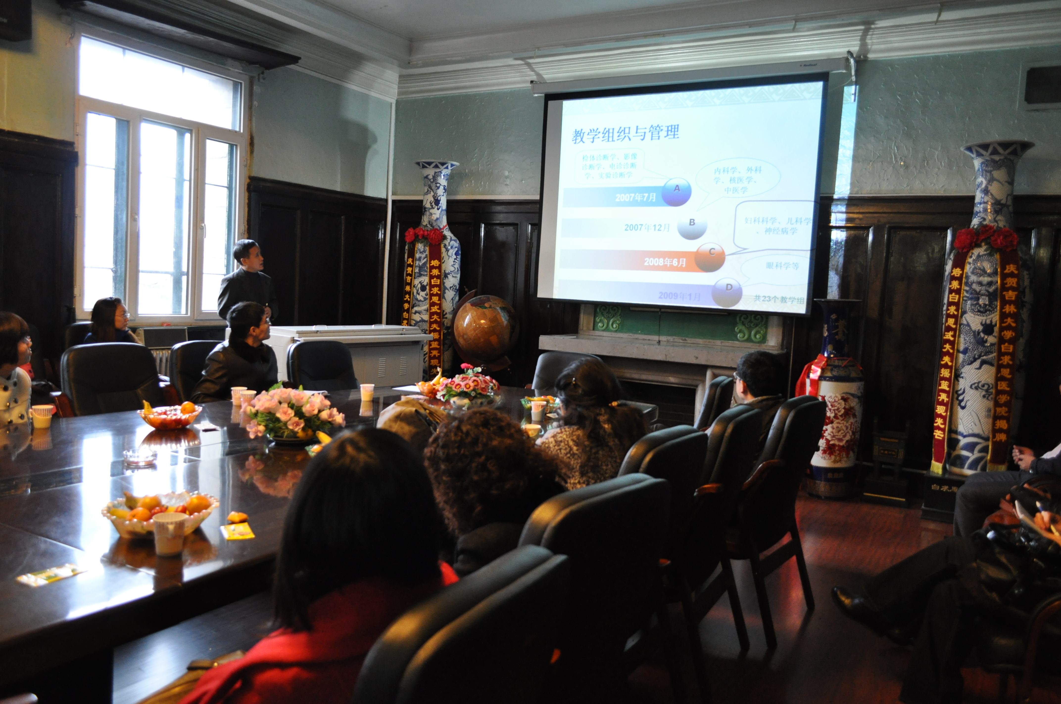 10月24日下午,白求恩医学院在学院三楼会议室召开全英授课临床教学座谈会,反馈学生“及时性”教学评价结果,同时听取教师代表对进一步提高教学质量的意见。白求恩医学院常务副院长孙连坤、各临床学科教学组组长、副组长、第一、第二、第三临床学院科教部管理人员、留学生办公室工作人员参加了本次座谈。