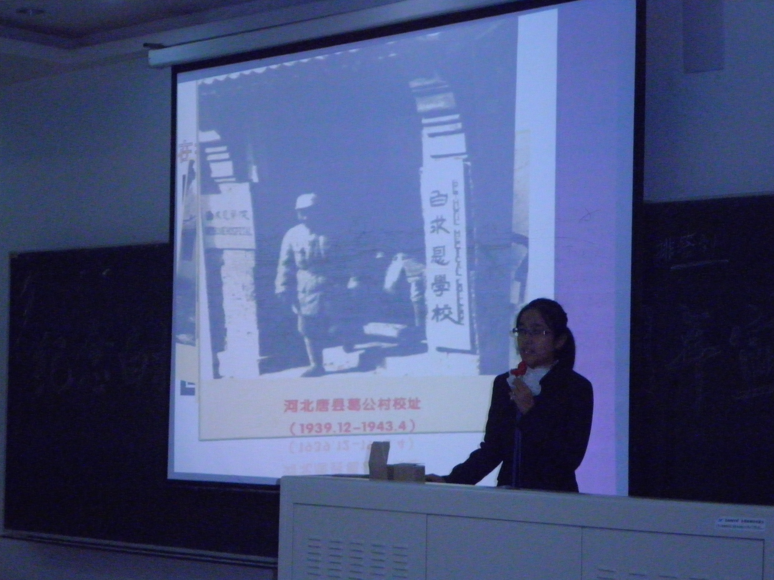 宣讲会上,白求恩医学纪念馆讲解员朱翠琳、杨帆分别现场讲解了诺尔曼•白求恩的生平事迹和原白求恩医科大学的发展历程。她们一边播放相关照片,一边声情并茂的讲述,使听众进一步了解了白求恩,感悟了白求恩精神。随后,张滨同学代表“冀梦韶华,寻根之旅”河北唐县牛眼沟村白求恩希望小学支教小分队为在场观众讲述了支教队的支教情况,支教队员在支教过程中无畏艰难的精神使每一位听众深受感染。
