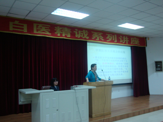 12月21日18时, “白医精诚”系列讲座第三讲——“谈医患关系”在新民校区2402教室举办,主讲人为我院行政副院长韩丽华研究员。韩丽华副院长从事医务工作近30年,有丰富的处理医患关系的经验。她从医患关系的定义、发展、类型及语言表达的重要性入手,结合亲身经历告诉学生怎样避免和处理医疗纠纷。她还强调应通过语言交流和分析对方的身份、心理来避免非技术性医患纠纷。一个个鲜活的案例让同学们对如何处理医患关系有了一个深刻的认识,并对医生的责任和使命有了更深的感悟。
