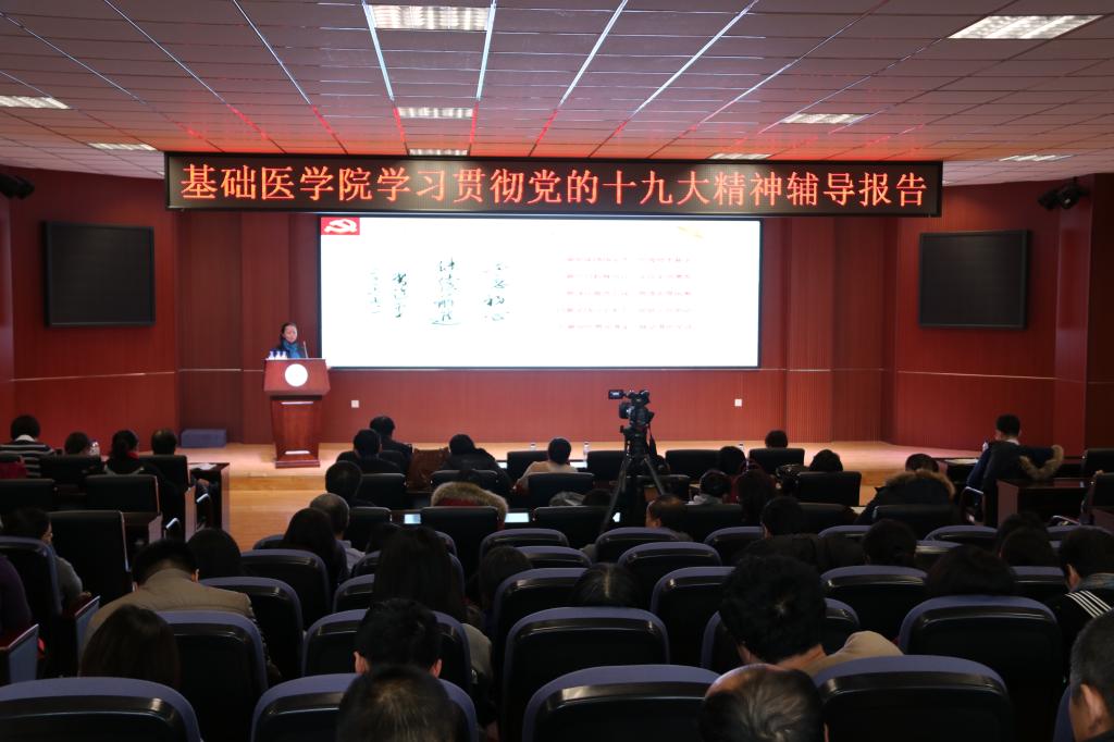 党委在新民教学楼一教401召开学习贯彻十九大精神的辅导报告会。报告会由学院党委书记郑爽主讲,院长孙连坤主持,学院全体教职工参加了报告会。