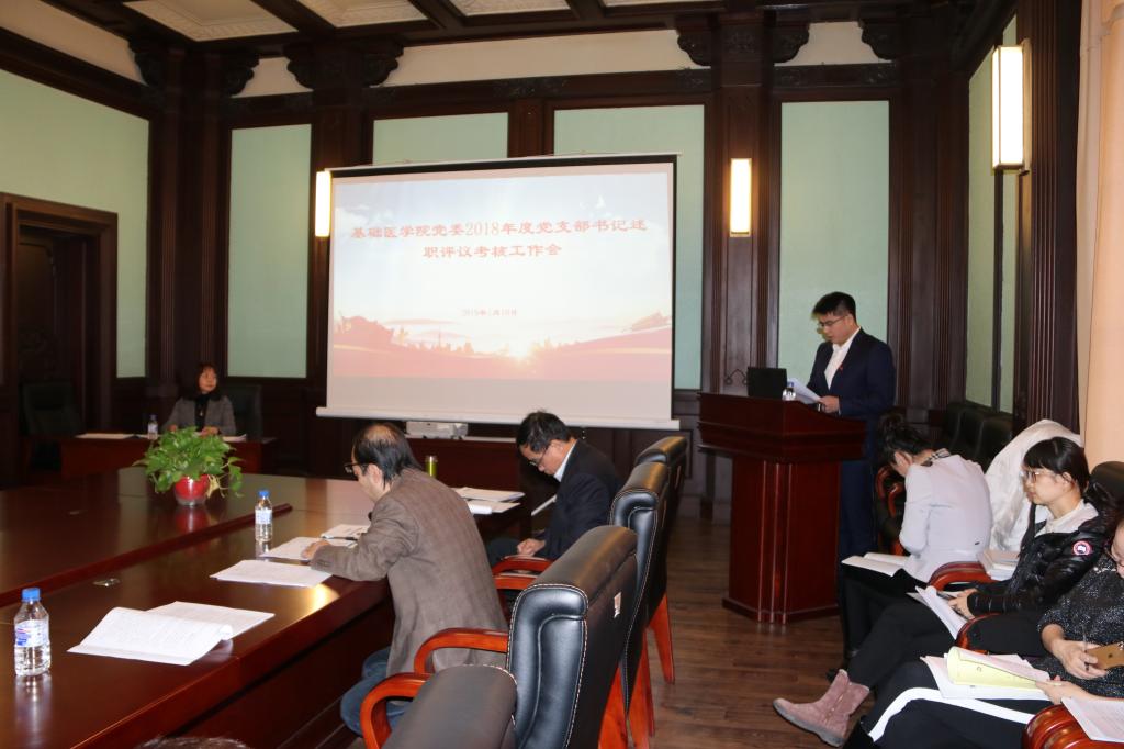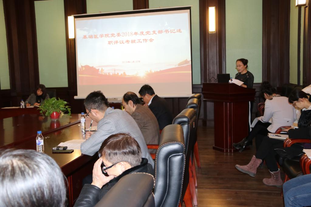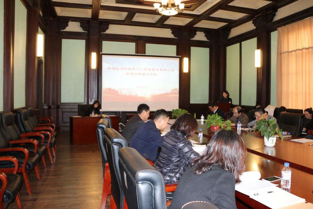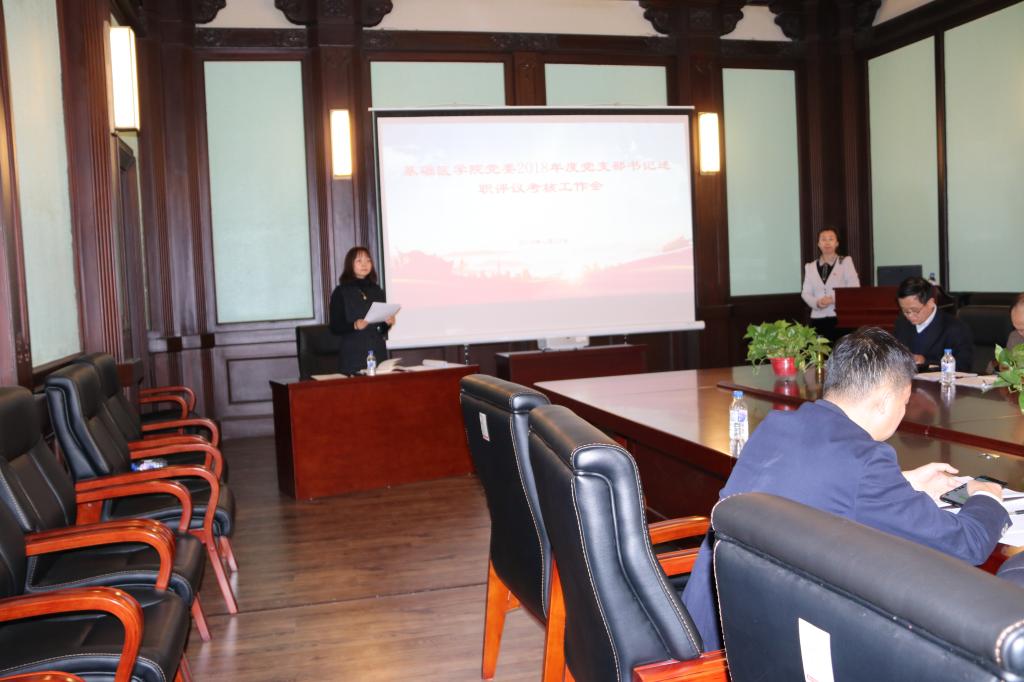 党委在基础四楼会议室召开了2018年度党支部书记述职评议考核工作会。学院党委委员、纪委委员、行政领导班子成员、党支部书记、党办主任参加了会议,同时邀请了党员代表及各科室、教研室、学系及中心主任参会。会议由学院党委书记郑爽主持。