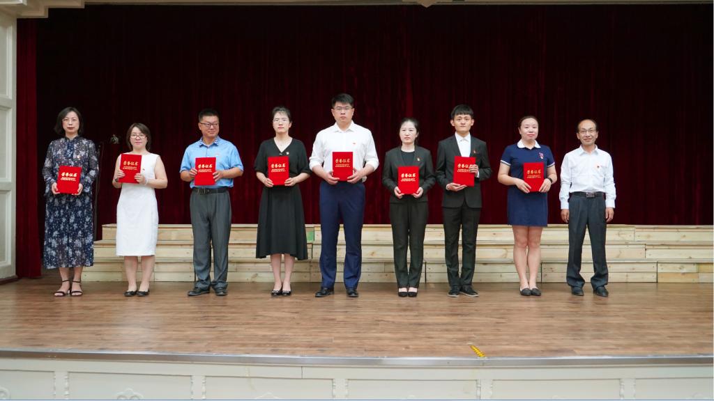 会上,学院院长孙连坤宣读了2019年学院创先争优表彰决定,表彰了靳英丽等32名优秀共产党员、刘芬等25名优秀党务工作者和教工第一党支部等4个先进党支部。学院党委书记郑爽和副院长刘海岩、李洪岩分别为受表彰的集体和个人代表颁奖并合影留念。何旭教授和单奕迪同学分别代表受表彰的优秀党支部书记和优秀党员讲话。