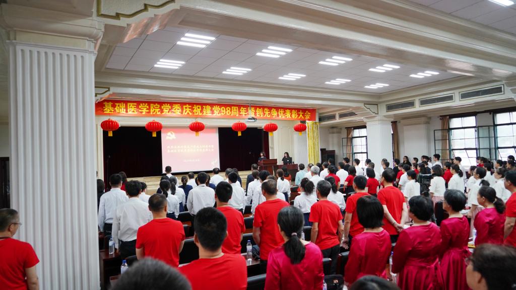最后,学院党委书记郑爽做讲话。郑书记代表学院党委向受到表彰的集体和个人表示祝贺,向学院全体党员致以节日的问候;她讲述了如何在传承发扬中增强责任感和使命感,讲述了党的光辉历程、祖国的繁荣昌盛和历代白医人的奋斗历程以及我们在干事创业中应具备的政治品格和我们的担当担责。同时,郑书记希望学院的全体师生都要以庆祝建党98周年为契机,辛勤工作、愉快生活,跟随新时代,不辞艰辛,执着追求,以更加饱满的工作热情和扎实奋进的工作状态,为学院发展和“双一流”建设做出新的更大的贡献!