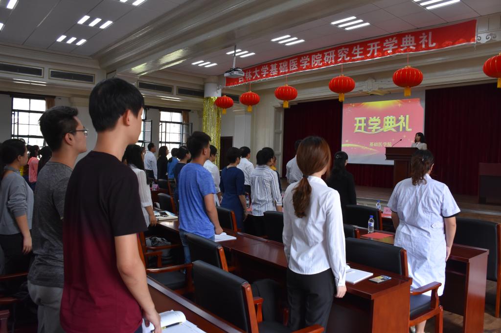 在庄严肃穆的国歌声中,开学典礼正式拉开帷幕。首先,孙连坤院长发表致辞,院长从自身数十年奋斗经验出发,向同学们传递“理念,态度与传承”的内涵,院长从涵养家国情怀出发,寄语同学们志存高远,逐梦前行,在崭新的平台上勤奋刻苦、努力奋斗。同时他提醒大家要遵守学院制度,保证个人安全。随后,导师代表刘佳梅教授教导同学们要学会明确目标,制定规划,善于总结,不断进取。接着,新生代表王蕴凤博士分享了自己的学习经验,鼓励大家奋勇前进。典礼最终在雄壮的校歌声中圆满结束。
