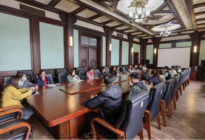 副书记曹国丽、副院长李洪岩、研究生办公室主任丁红枫以及各年级研究生代表参加此次会议,会议由研究生辅导员孙佳钰主持。
