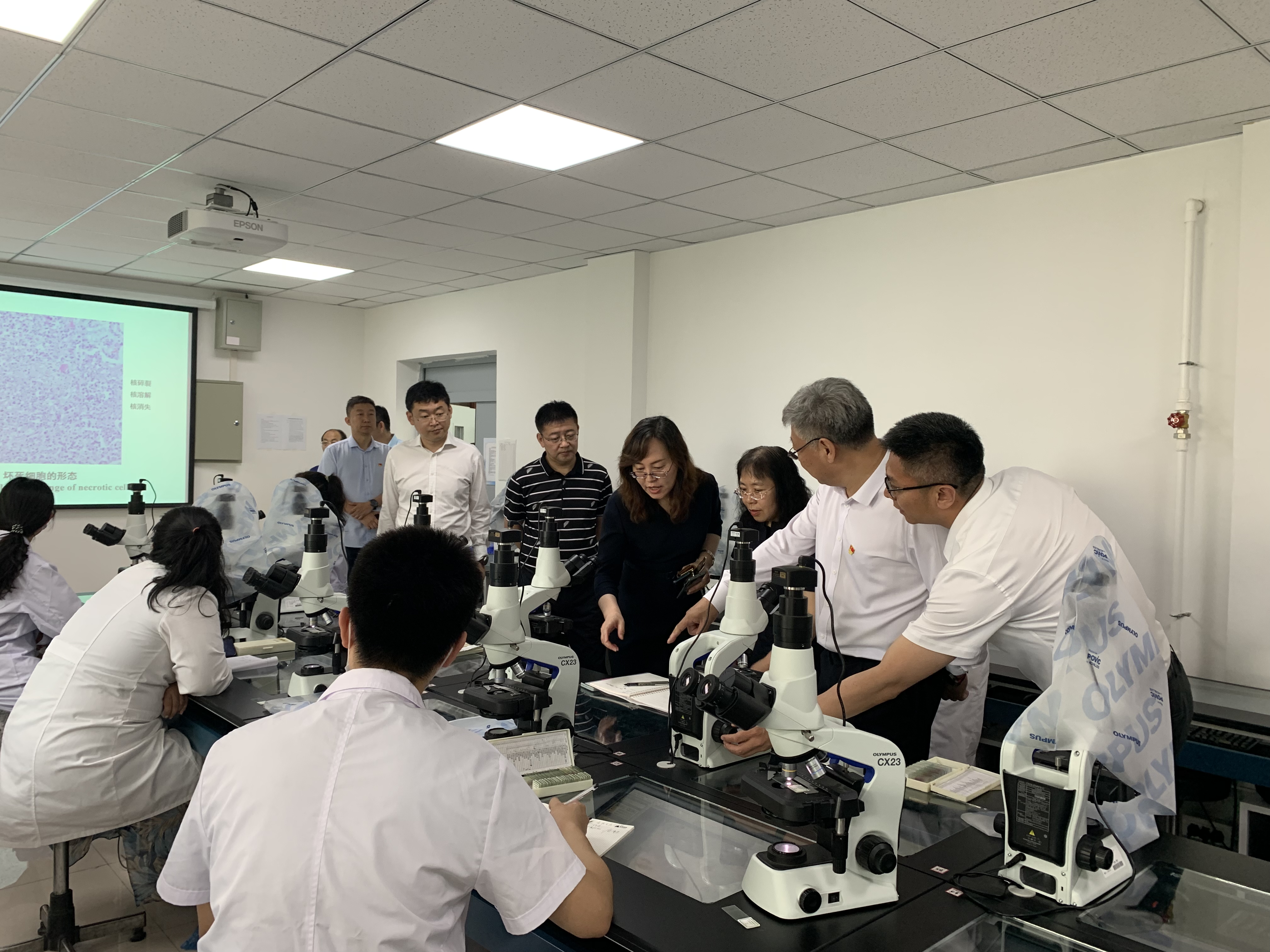 院长王放的工作汇报,随后,走进实验室向师生表达问候。在可移动实验平台,于蕾老师和学生们正在做的家兔呼吸运动的调节手术演示实验,学生可通过清晰的大屏幕看到手术演示全过程,真正实现互联互通,实时互动。在病理实习课堂,观摩了何旭老师“损伤的修复”课程,观看了学生的实验演示并亲切问候同学们的学习状况,病理生物学教育部重点实验室主任、副院长辛颖向冯书记介绍了病理学形态实验的相关情况。冯书记对同学们的实操能力给予了充分肯定。在分子生物学实验室,老师正在带领同学们进行转基因斑马鱼克隆实验。斑马鱼是国际上用于快速研究人类疾病信号传导途径、有效药物高通量筛选的最佳模式生物之一。冯书记对学院在斑马鱼方面的前沿研究表示肯定并寄予厚望,期待学院的斑马鱼研究能在探索人类疾病发病机理,筛选治疗靶点,进行新药开发以及药物毒性与安全性评价上发挥更大的作用。最后,冯书记一行来到医学影像虚拟解剖联合实验中心检查调研,参观3D打印白求恩像,观看了成人网站