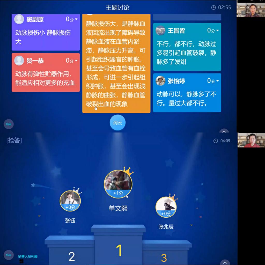 共计承担专业基础课程44门次,总学时2476学时,选课学生达6455人次。面对突然的教学模式的转变,各学系按照新学期提交的应急预案及时启动在线教学方案,稳步推进既定的教学进程,本次线上教学多采用超星学习通在线直播的方式,并随堂实施主题讨论、测试、讨论等教学活动,师生在线上体会了真正的“互动”。此外,经过与上海梦之路虚拟软件平台沟通,开放了341项基础医学类实验项目,作为教学补充资源供师生使用。
