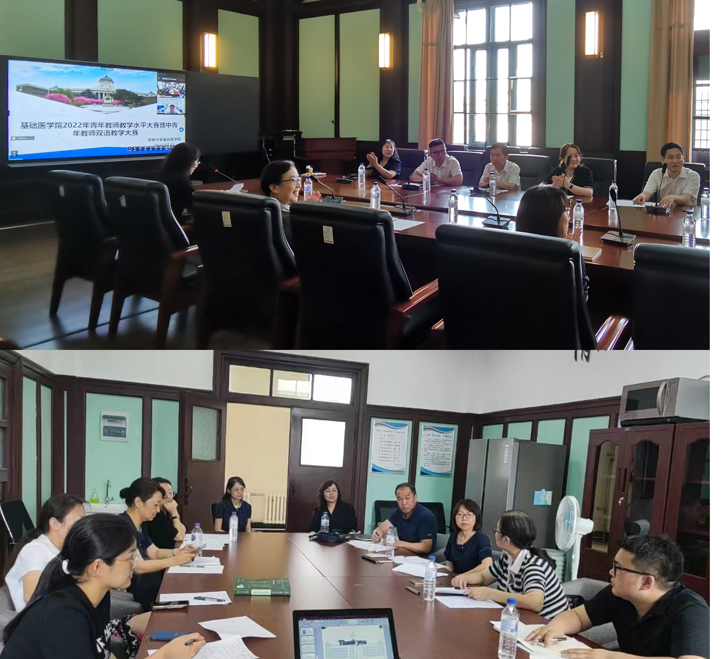 为进一步弘扬教学工作的主旋律,全面提高青年教师的职业素养、教学能力、教学艺术和教学效果,提升人才培养国际化水平,提高双语教学授课水平和质量。7月1日,我院成功举办了2022年青年教师教学水平大赛暨中青年教师双语教学大赛初赛。按照赛事类别,比赛分别在基础楼407和409两个会议室同时进行。