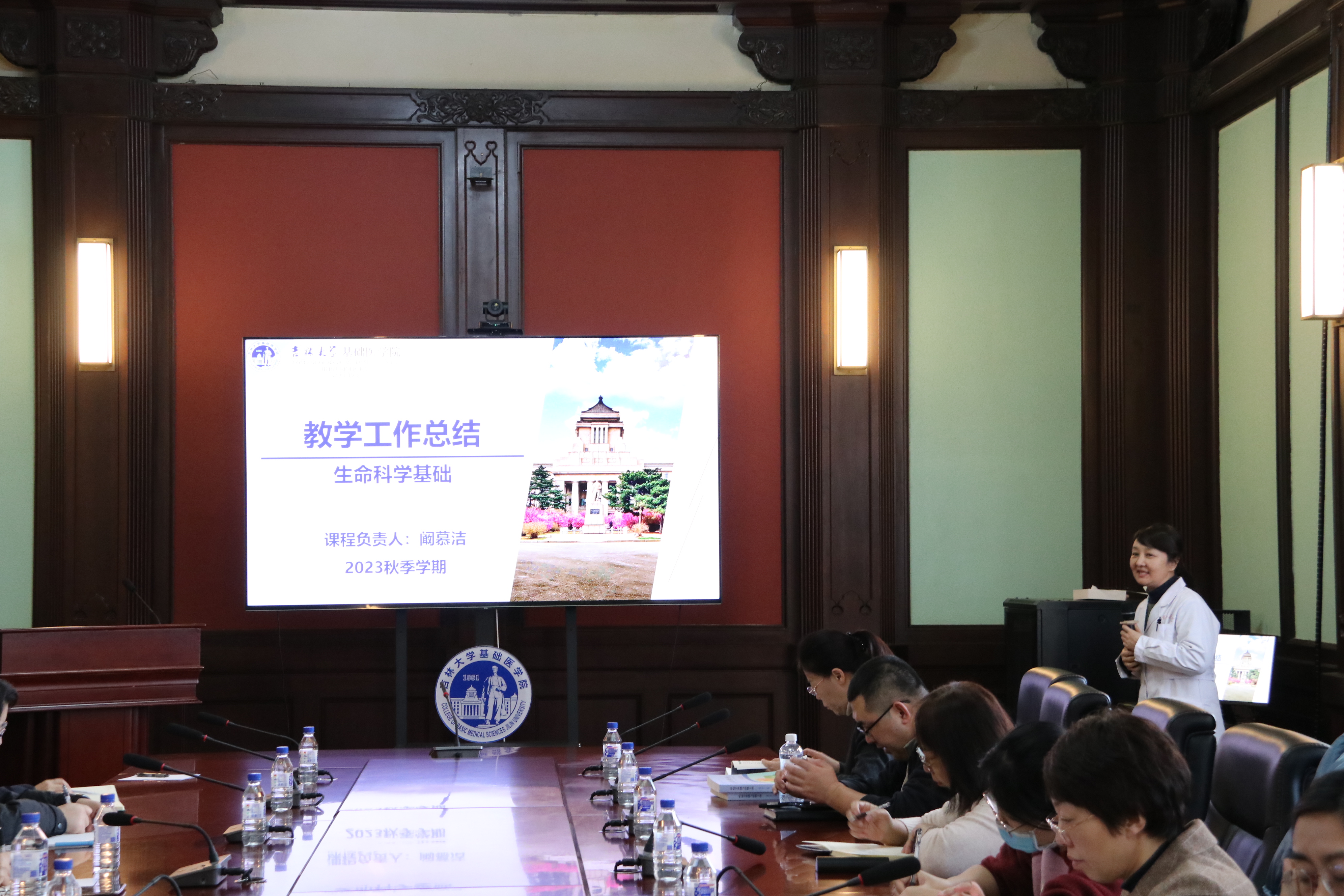 会议中,首先《生命科学基础》课程负责人阚慕洁老师从教学目标达成度、教学内容完成度、教学评价结果以及学生的教学反馈四个方面对开课情况进行了汇报。该门课程涵盖了细胞生物学、生物化学和分子生物学三大医学基础学科的内容,通过六大模块授课,以形成性评价方式考核学生,将思政元素巧妙融入课程教学中,为学生提供了丰富的线上教学资源和拓展学习内容,学生对该门课程教学满意度达90%以上。