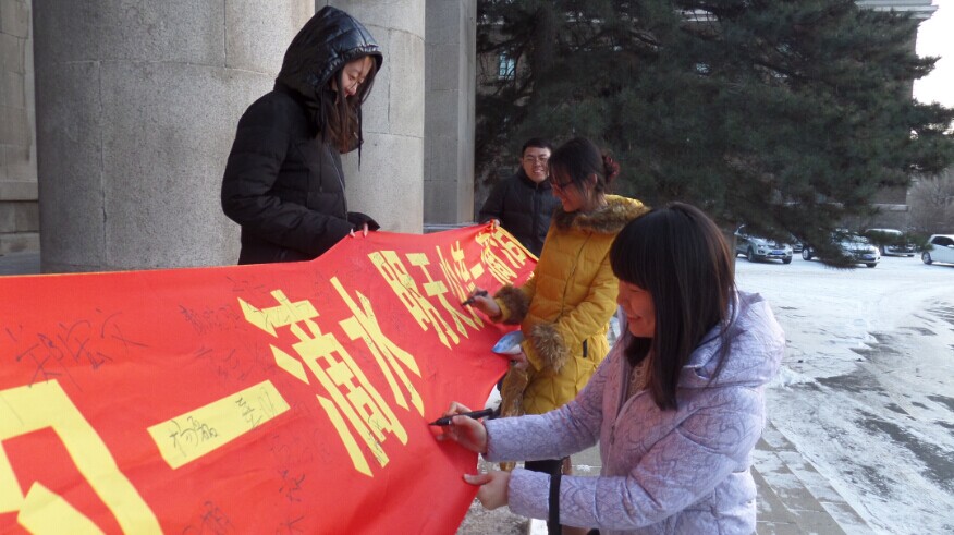 和各研究生宿舍楼内水房及卫生间张贴了“今日节约一滴水,明天少流一滴泪”的宣传标语,而且以条幅签名的形式宣传节约理念,倡议广大师生节约用水,从自身做起,从一点一滴做起,共同为构建节约型社会尽一份绵薄之力。