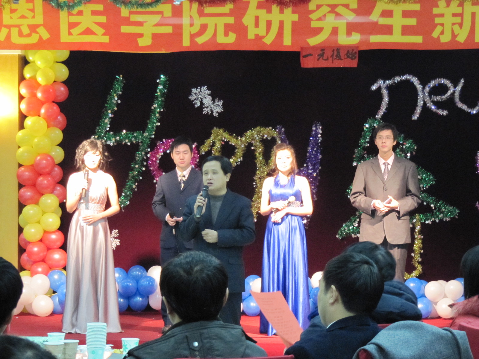 我院“谱写青春华章,讴赞美好未来,相约白医,携手同行”元旦文艺晚会于12月30日在七一大厦顺利举行。医学部学位委员会主席、学院常务副院长孙连坤,学院党委书记屈英和,副院长李一雷等学院领导、学位分委员会主席王丽颖及学院职能科室主任莅临晚会。
