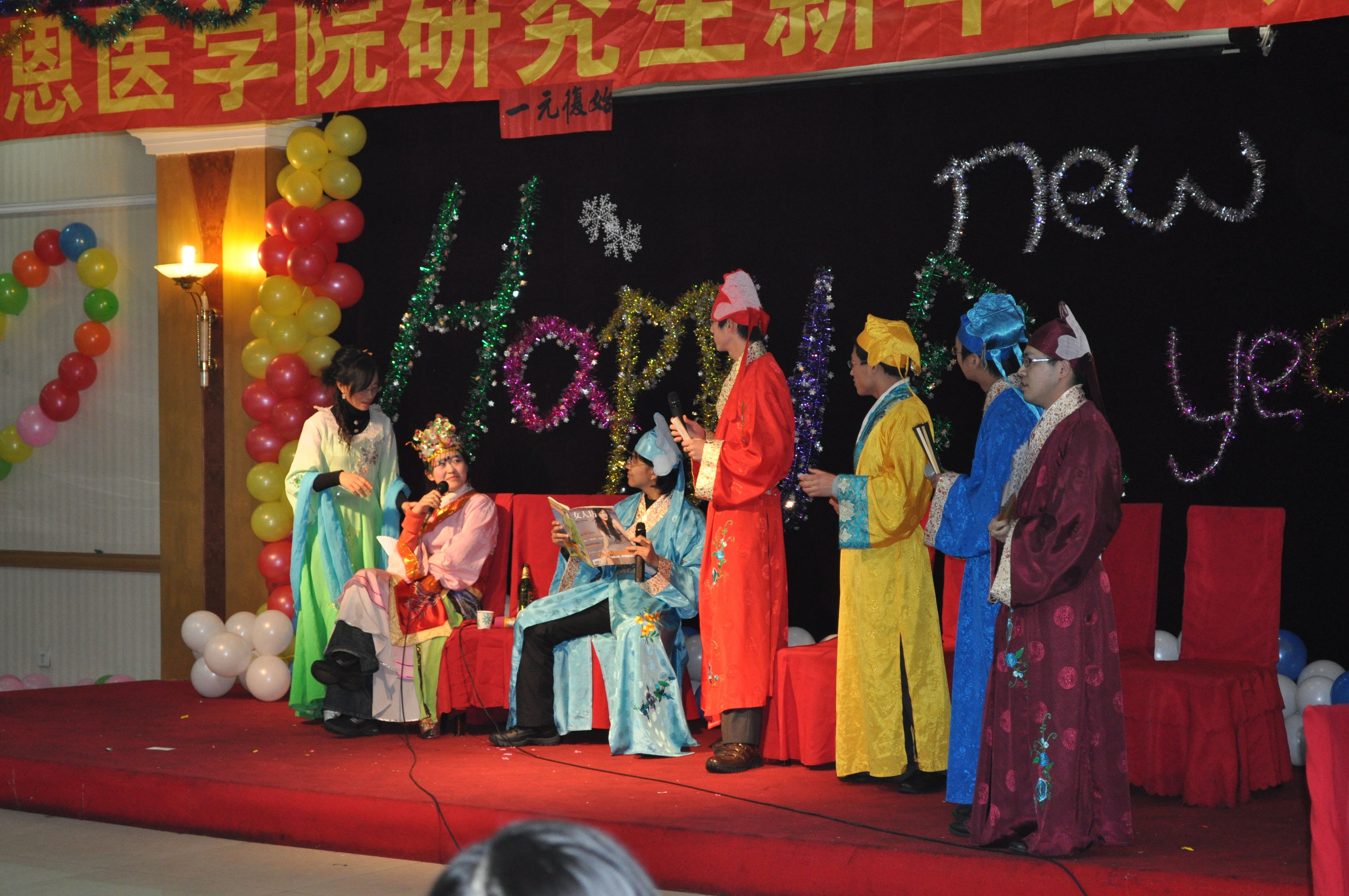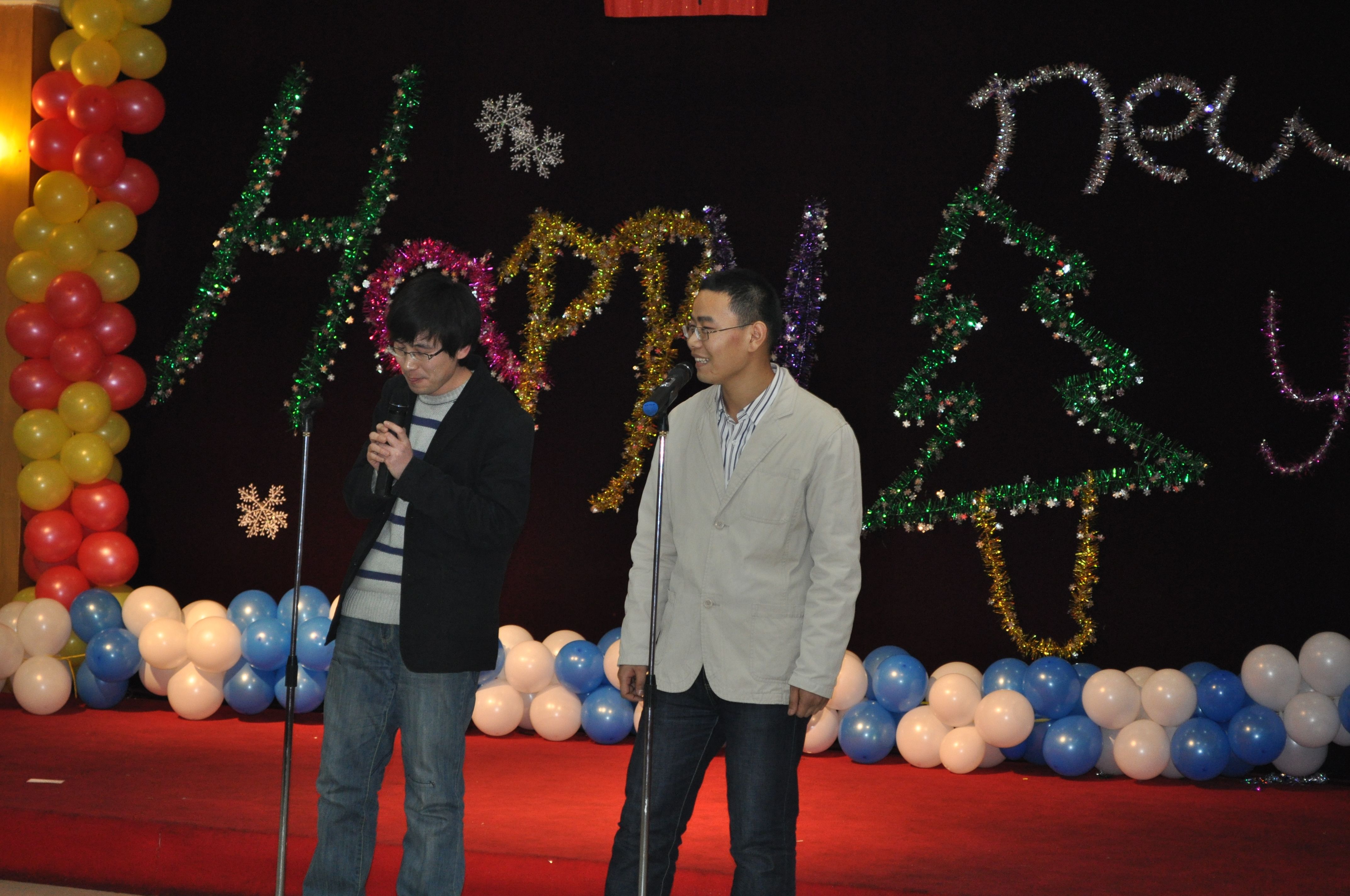 常务副院长孙连坤为晚会做了新年致辞,并对同学们提出殷切希望。同学们克服了期末考试时间紧张的困难,热情参与、积极准备,用歌声、小品、相声、舞蹈、三句半等精彩的文艺表演为新的一年翻开了美好的一页!在游戏互动环节中,学院领导的参与使整个晚会达到了高潮。抽奖活动中,同学们的热情期待一触即发!整台晚会一直洋溢着欢乐的情绪。